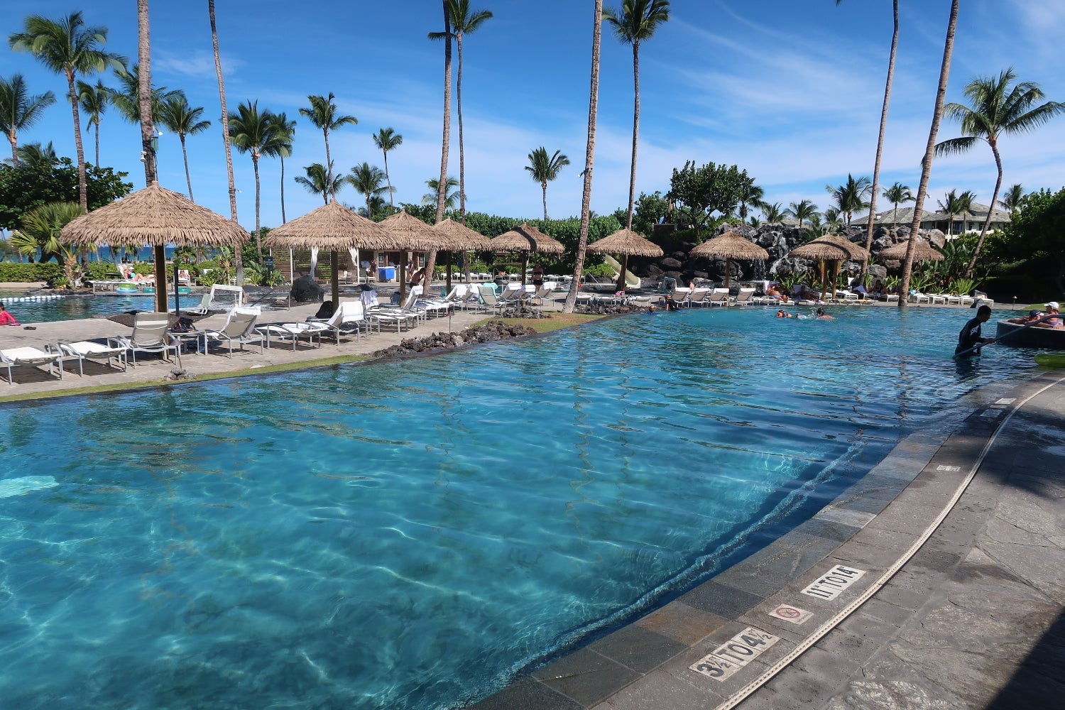 The resort had two swimming pools, both freshwater, and three hot tubs. One swimming pool had a slide and a shallow sand area for children.
