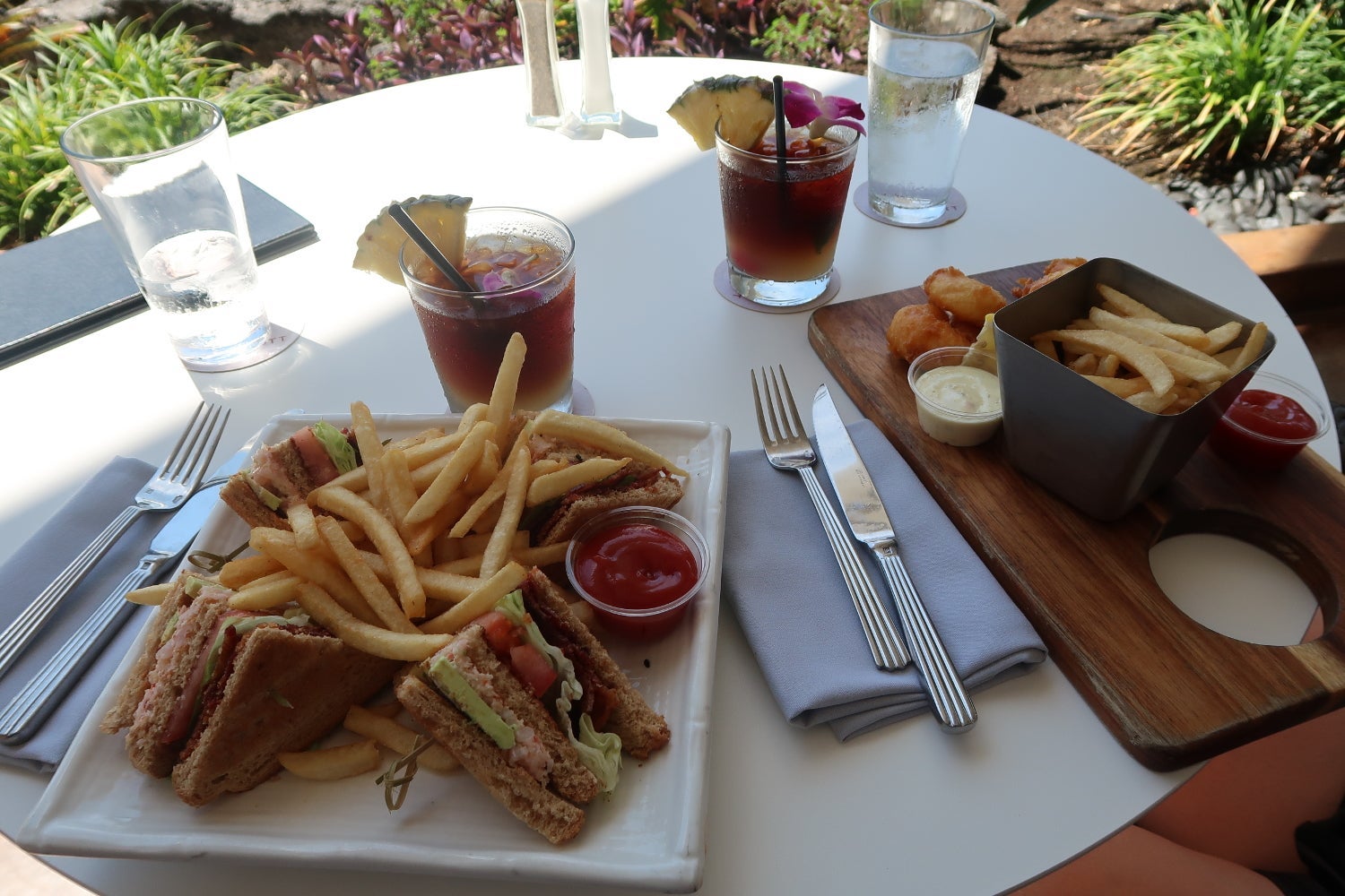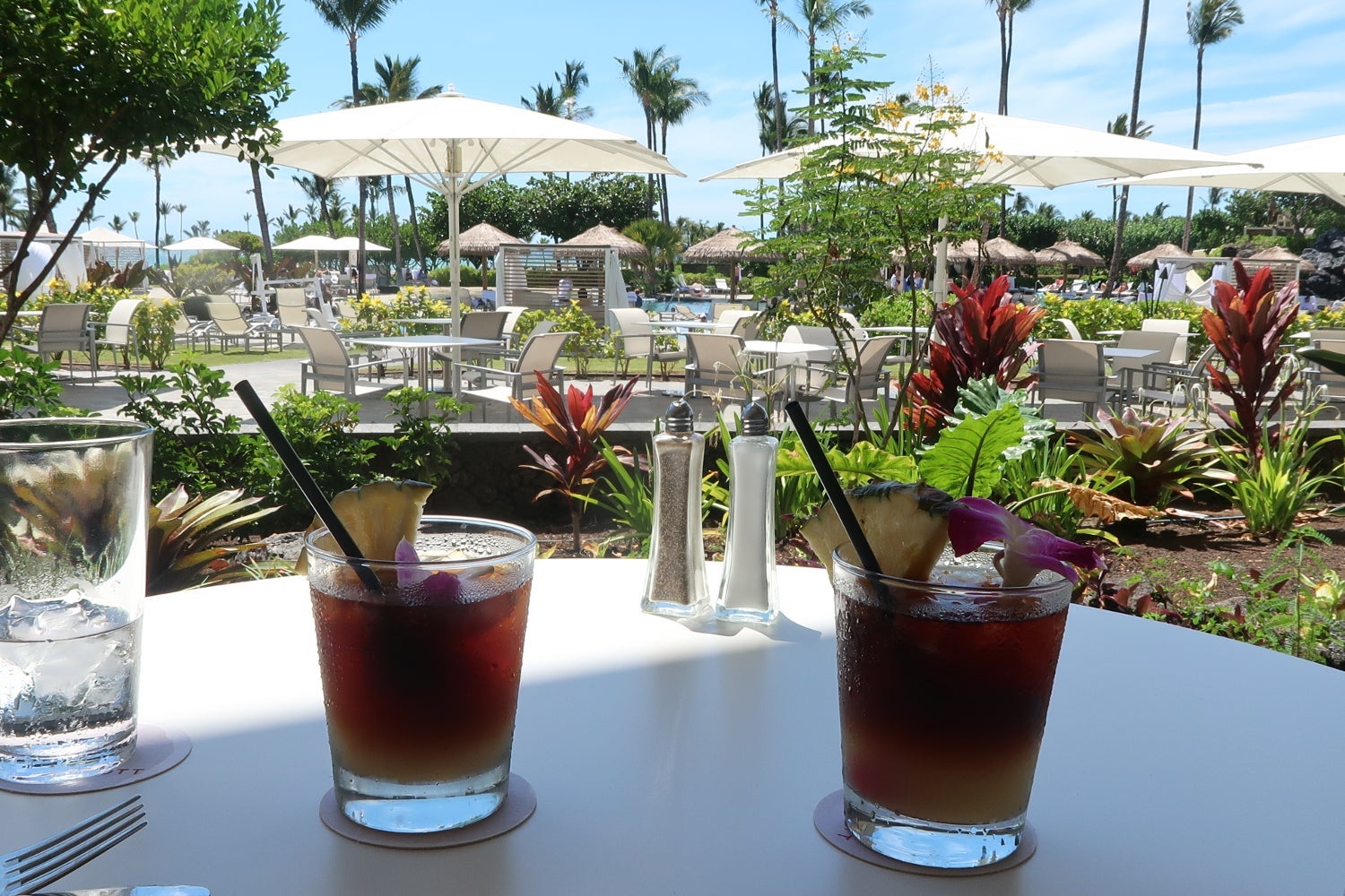 We had a late lunch at Hawaii Calls one afternoon. We originally enjoyed overlooking the pool, but soon found ourselves constantly having to shift the table to avoid being seated in direct sunlight. We each got a mai tai using the drink coupons that came with our resort fee. The drinks (normally $16 each) were surprisingly strong.