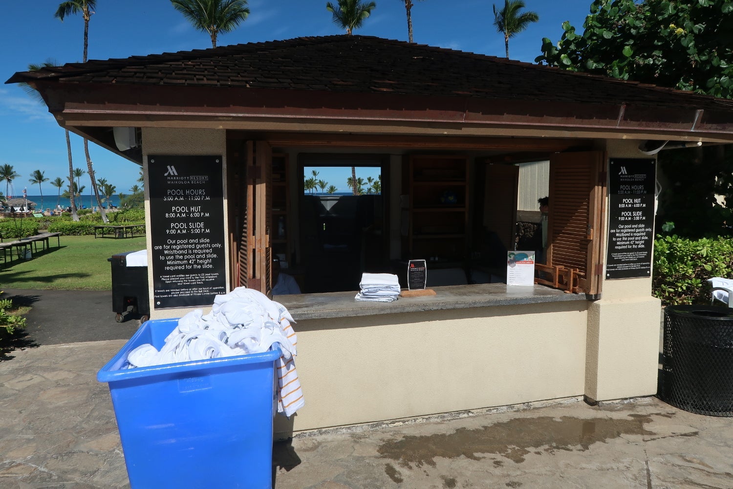 A pool shack and beach shack provided towels and equipment, but were only open from 8am to 5pm, though many guests were at the pool and beach outside these hours.