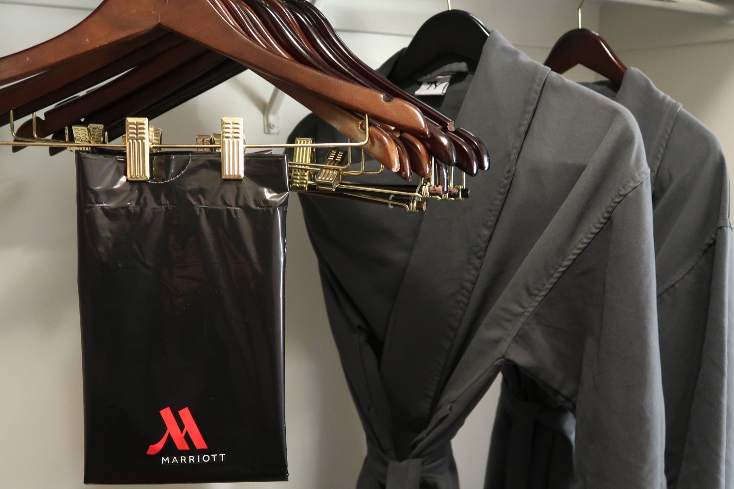 The walk-in closet came with two robes, an iron, an ironing board and a larger dresser in the closet. On shelves were extra pillows, slippers and a safe.