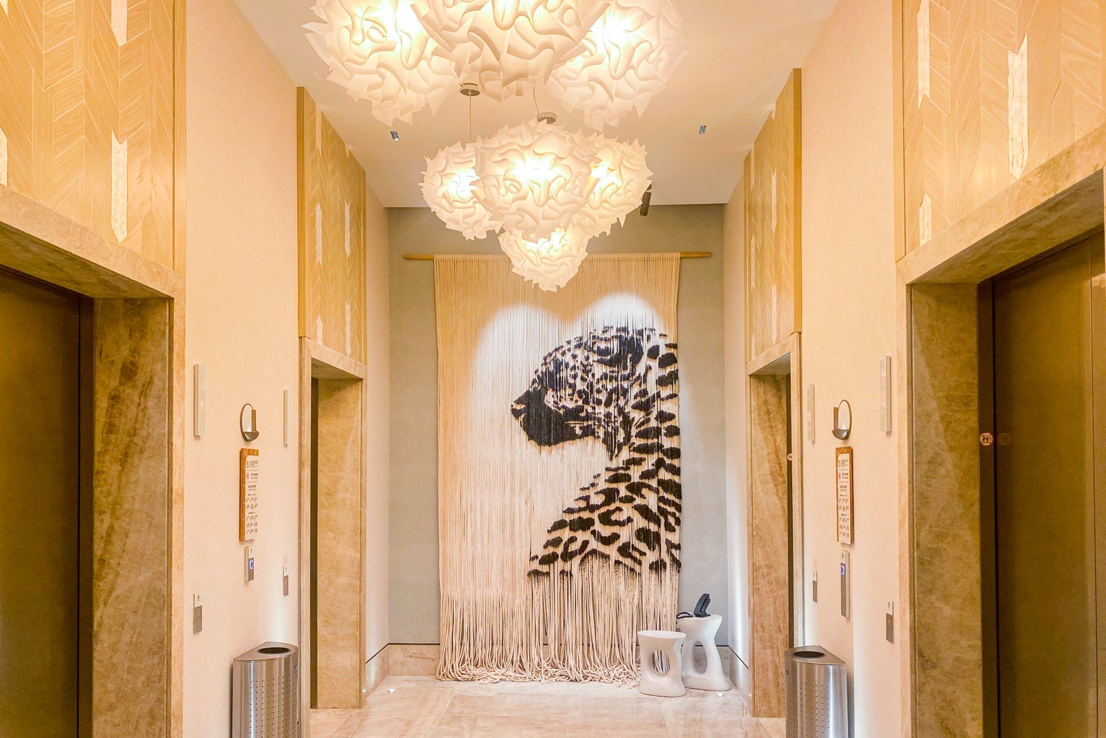 The Waldorf Astoria Cancun's emblematic Peacock Alley lobby bar leaves a dazzling first impression. Behind magnificent cedar doors, a pearl-inlaid Art Deco clock is flanked by soaring columns of gray marble and ocean-inspired chandeliers. Area rugs with blue swirls, curved sofas and circular white-marble tables all seem to flow toward the ocean.