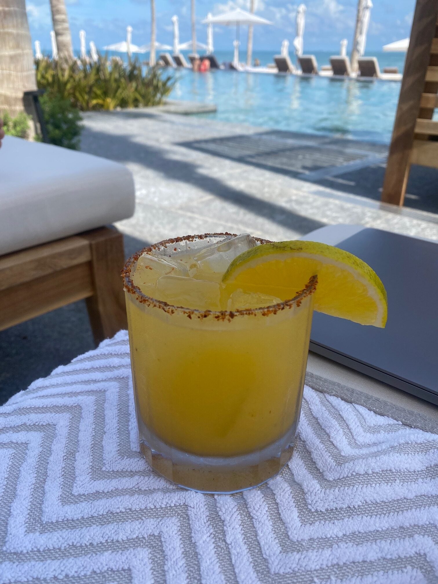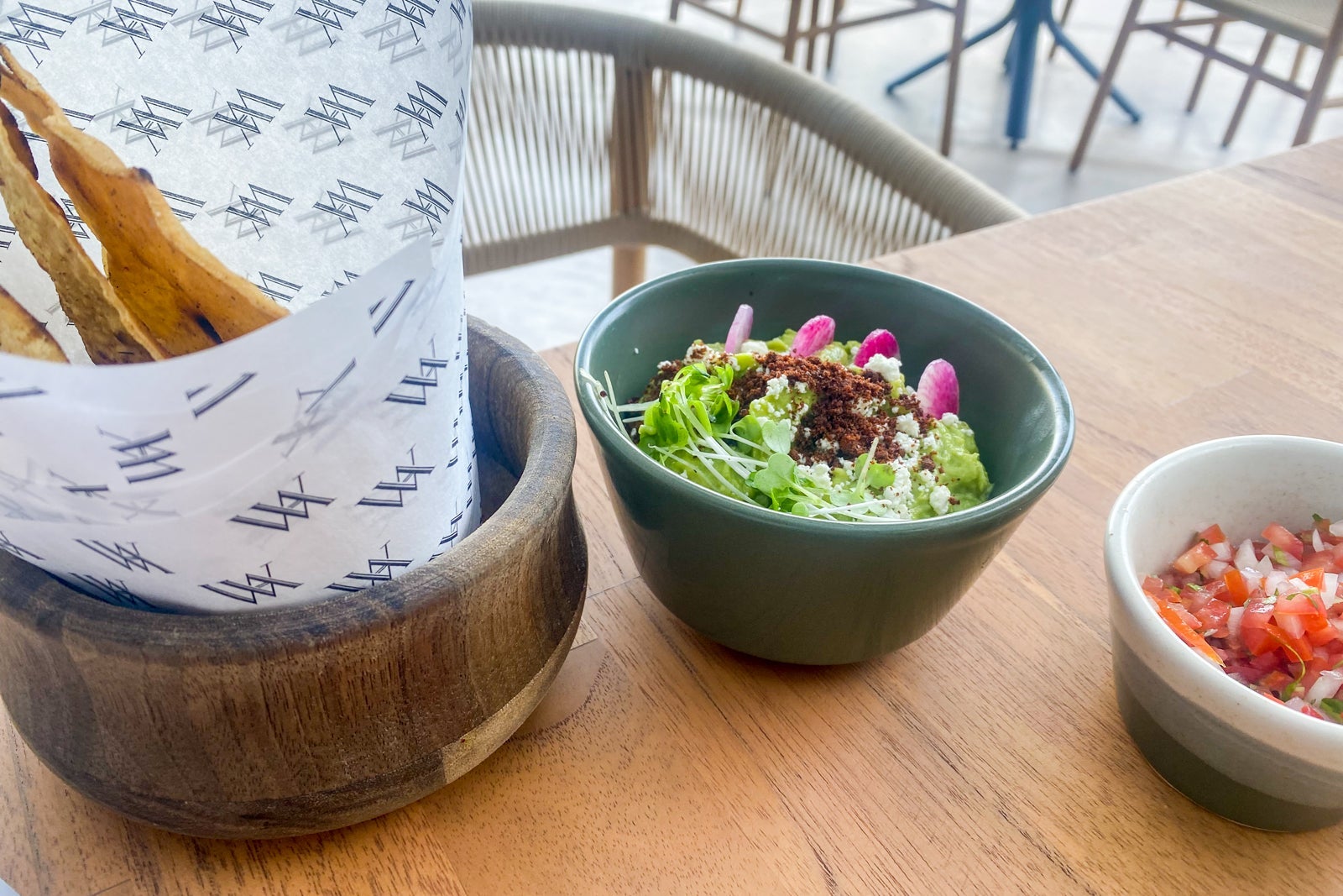 Like most guests, I opted to stay poolside and ordered the tasty (but not amazing) fish-of-the-day tacos ($520 pesos/$28) — local sea bass seasoned with tomatillo tatemado (spicy tomato salsa). The highlight was the passion fruit margarita ($360 pesos/$19) made with Don Julio and Cointreau.