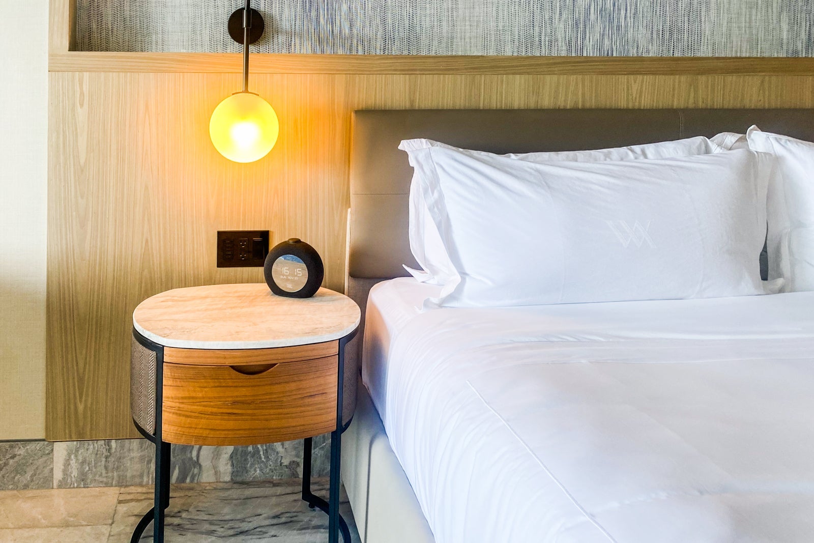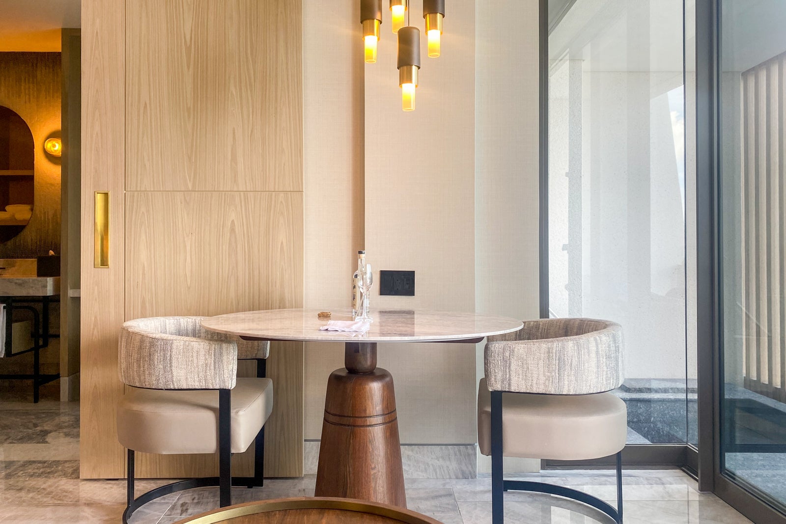 From the crisp white linens on the beige, leather-framed bed to the marble-tiled bathroom and fluffy robes and slippers, everything felt luxurious and thoughtfully designed.