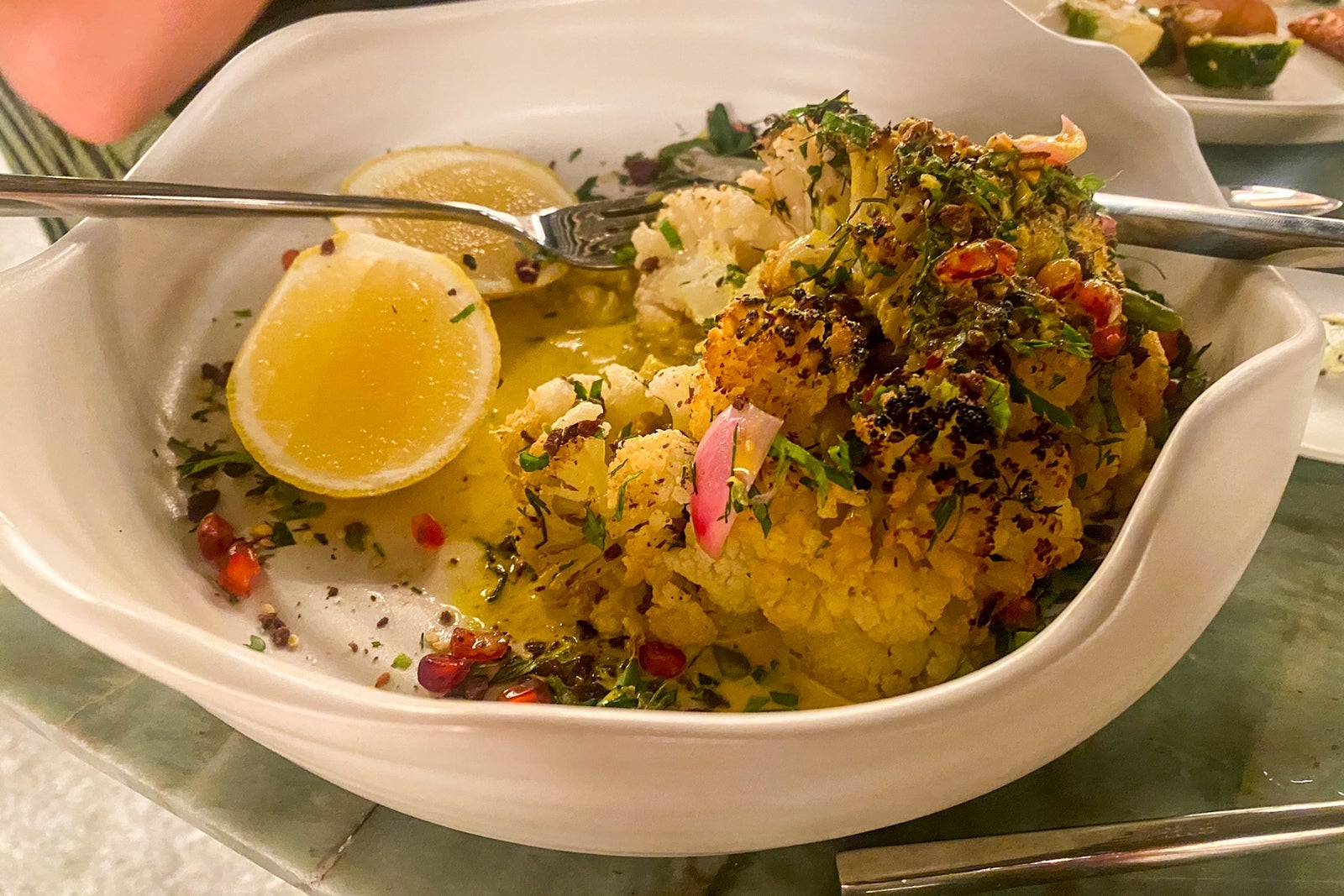 I ordered the grilled sea bass ($890 pesos/$45) with a side of whole roasted cauliflower ($260 pesos/$13) that was topped with pistachios, pomegranate and tahini sauce — it could quite easily have been an entree in itself. The prices were on par with a fancy restaurant in Chicago...and absolutely worth it.