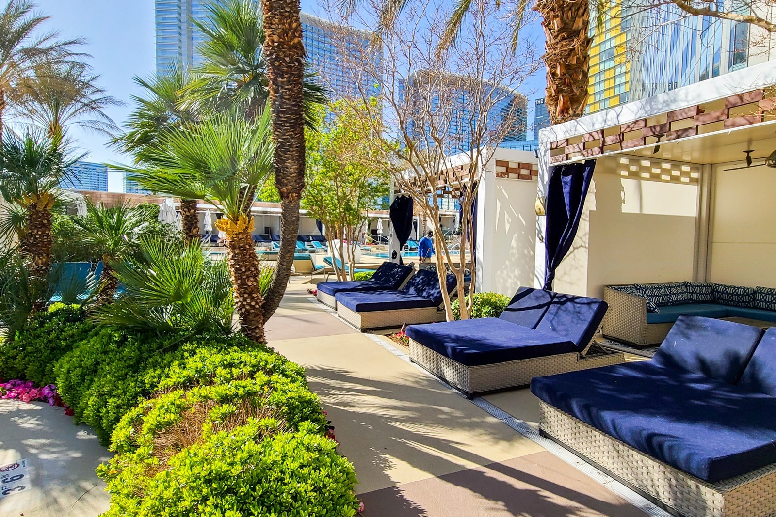 Like the rest of the property, even this pool space is designed to offer a break from the hectic street scene below — if you can ignore the reflection of the New York-New York Hotel in the Waldorf's windows.