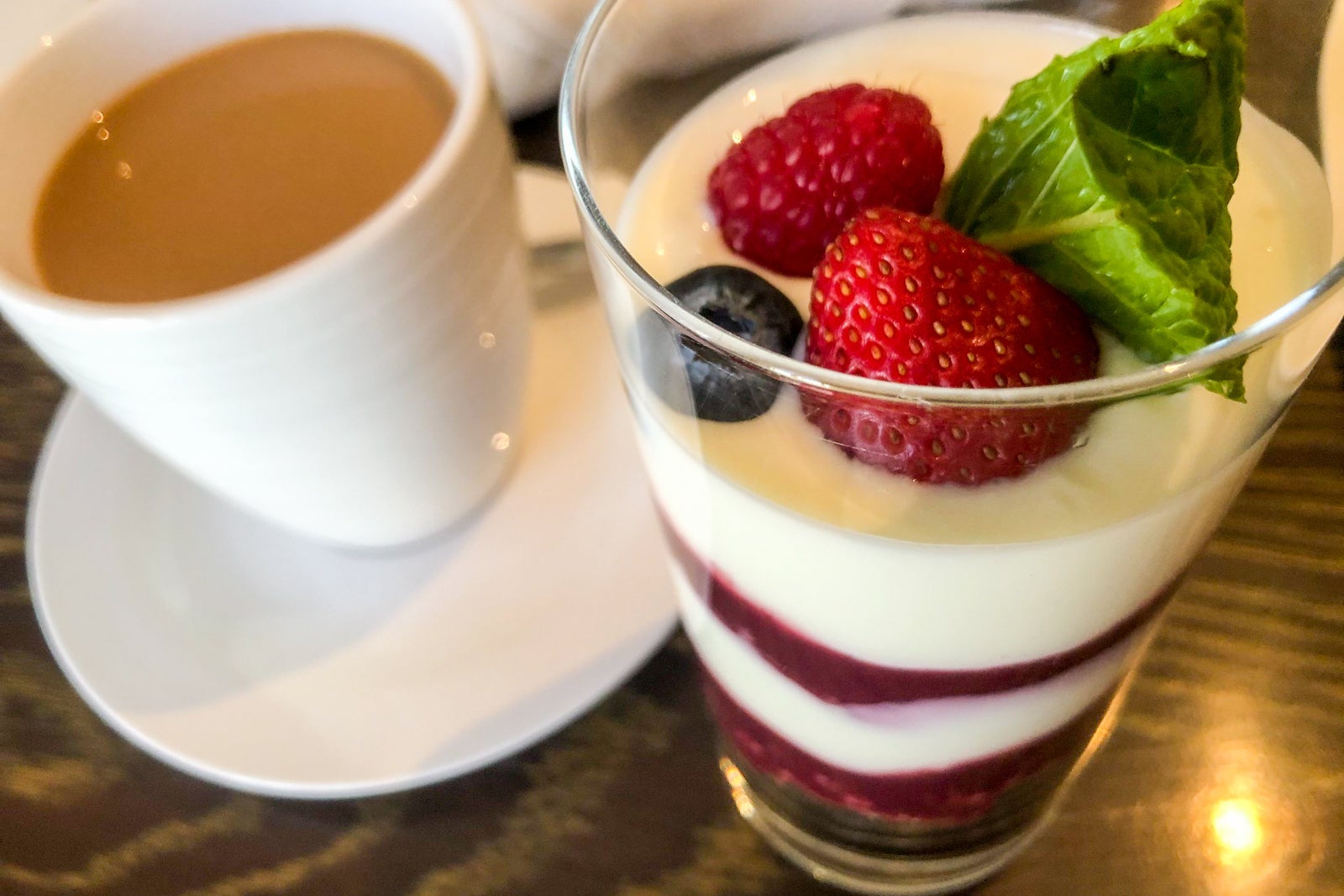 It arrived within 30 minutes; the hot items were hot and the cold items were cold -- a baseline for room service quality. The parfait in particular was a success. I worried about it being slightly gummy from having sat on a refrigerator shelf for too long, as is typical of too many hotel parfaits. But this one was light, the berries were sweet and it didn't even feel like I was eating dessert at 9 a.m., which I of course was.