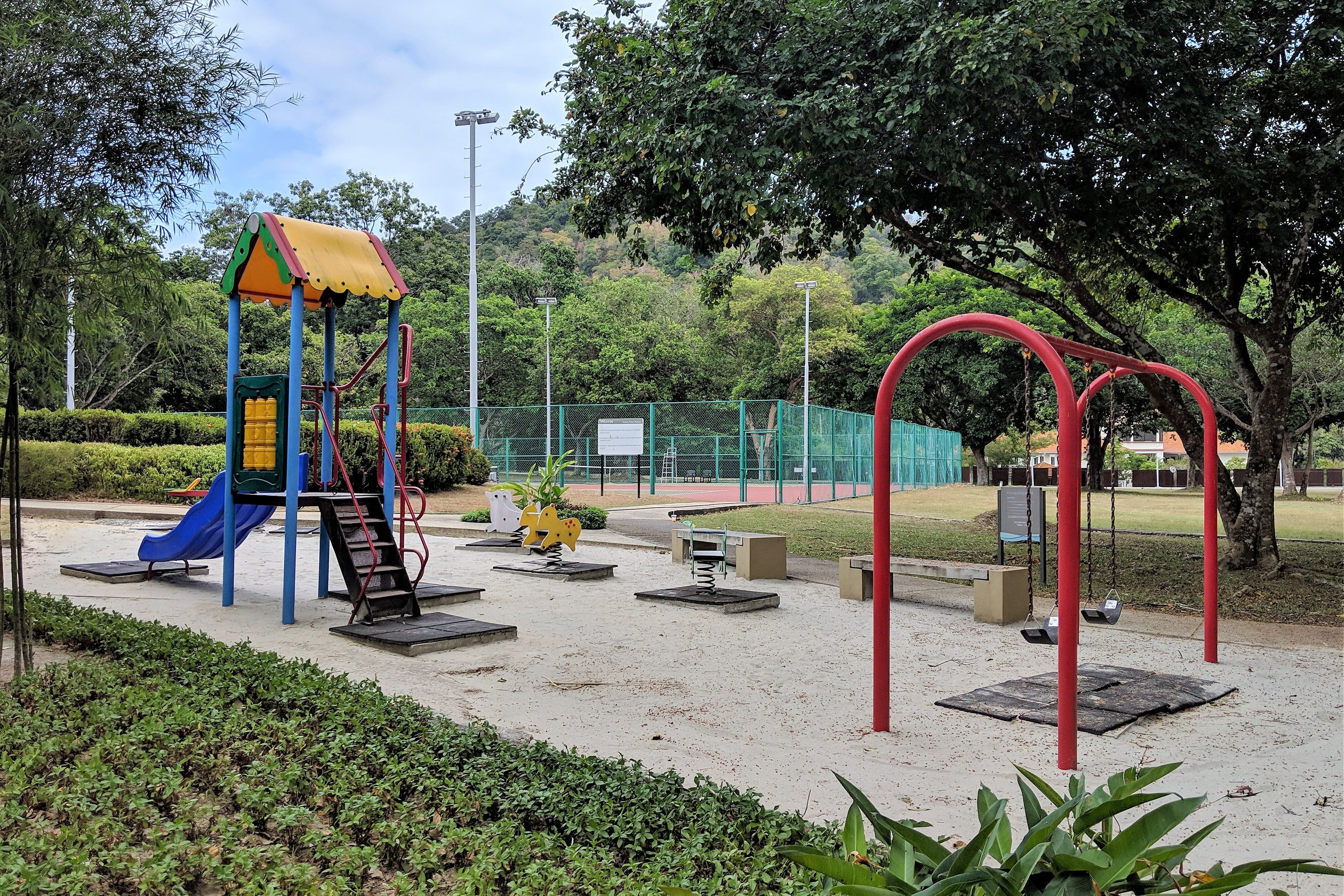 Next to the fitness center were a couple tennis courts and a children's playground.