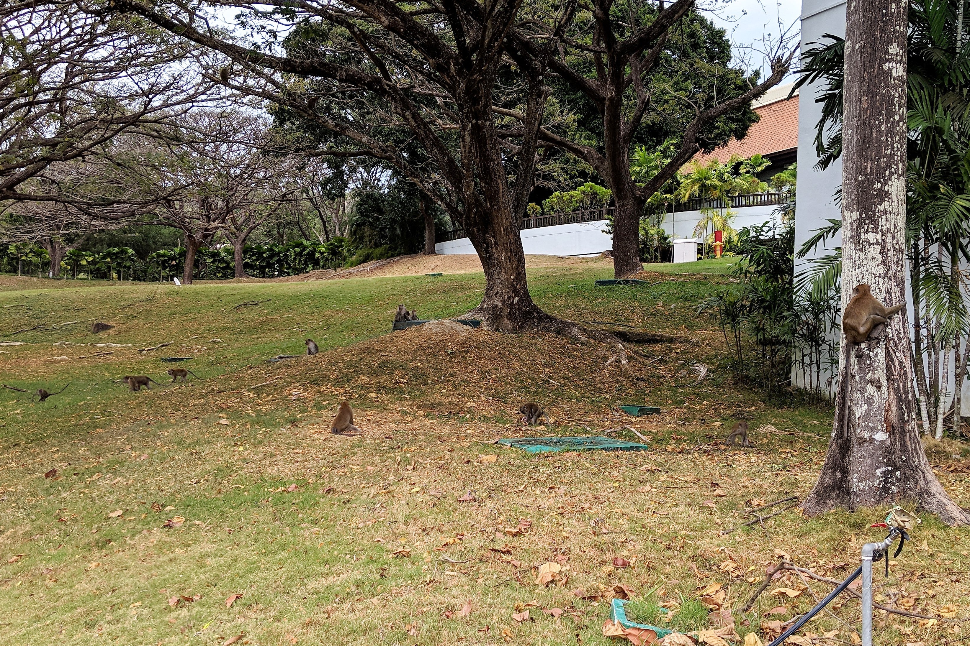 We walked out to Float one afternoon to enjoy the views and were thrilled to see about 20 monkeys as we walked back to the main resort area.
