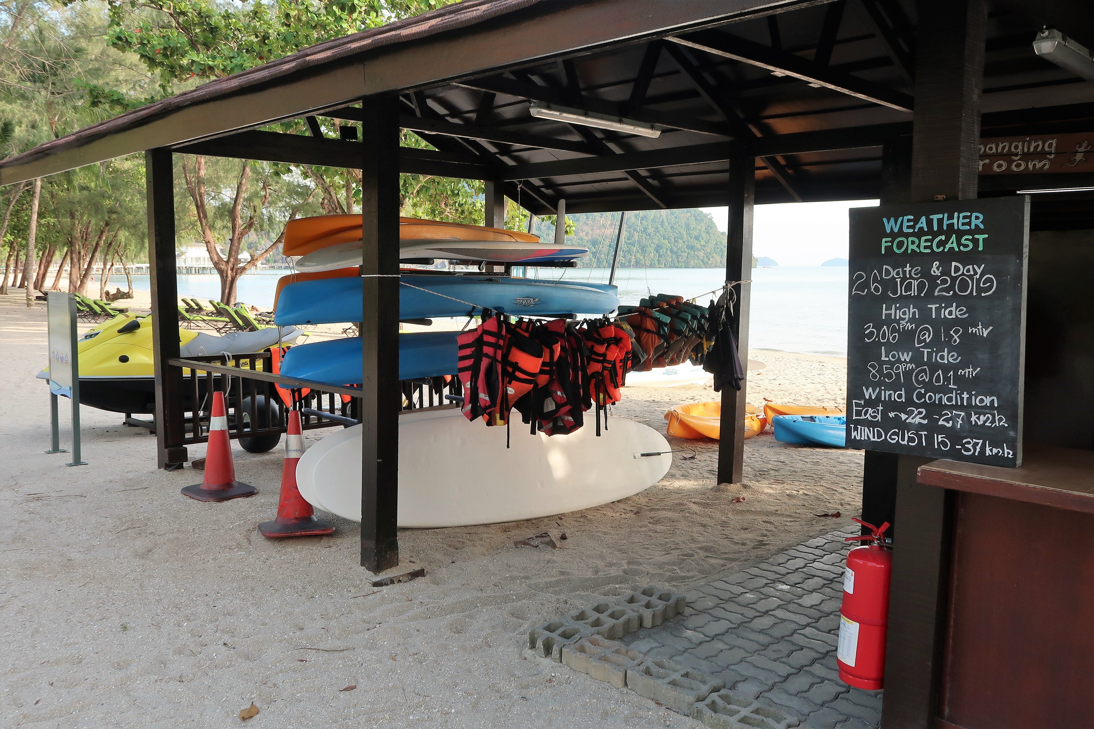 Near the beach was a staffed watersports center. Here you could rent various watercraft ranging from canoes to motorized catamarans.