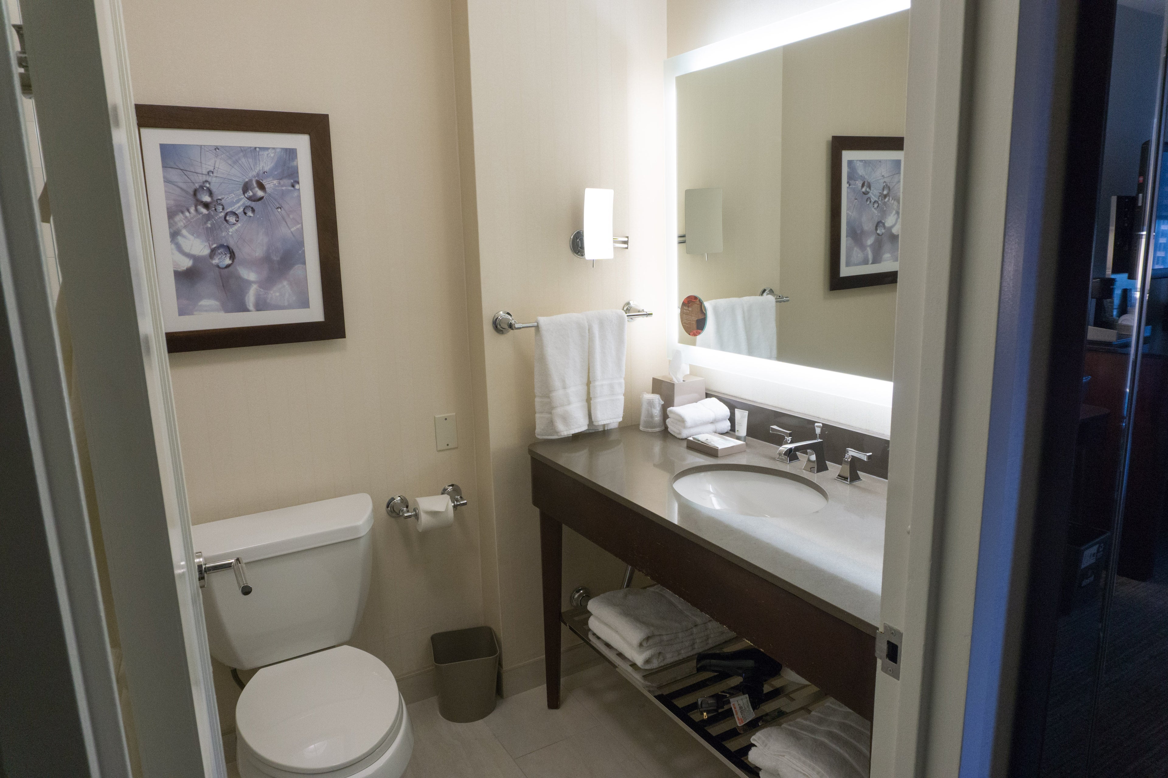 The room itself was your run-of-the-mill Westin room — comfortable but bland. The king size bed was large and comfy, but the walls were adorned with mediocre artwork. A small sleeper sofa was flush against the back window.