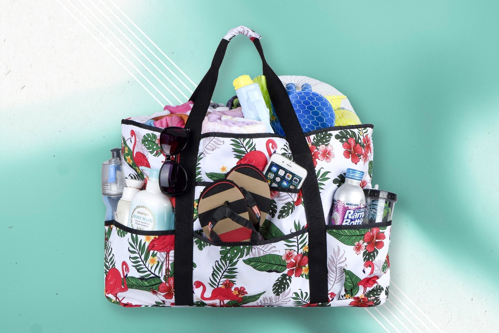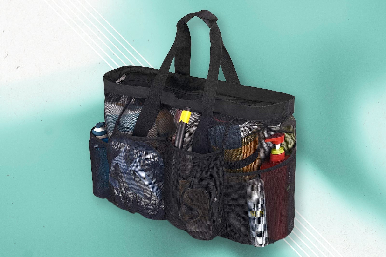 Finally, if you're looking for something large yet super lightweight, look to the Gotdya extra-large mesh bag for $13.99. We love that this 24 x 18 x 8.7-inch-bag is breathable, so those wet towels you're carrying back from the beach have a chance to dry out a bit. The bag's four outside pockets are deep and there's one interior zippered pocket.