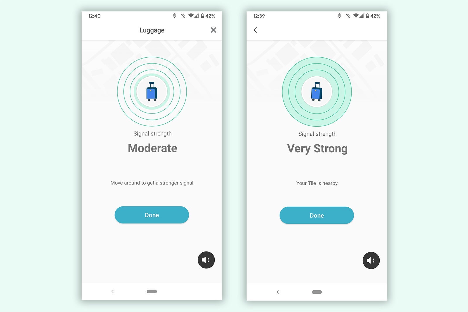 A display ranking your item's signal strength from "Weak" to "Very Strong" will show on your phone to indicate proximity to your item. To locate your item, press the ring button on your phone and listen for the tracker's ring tone (which is pretty loud, even for the basic Tile Mate).