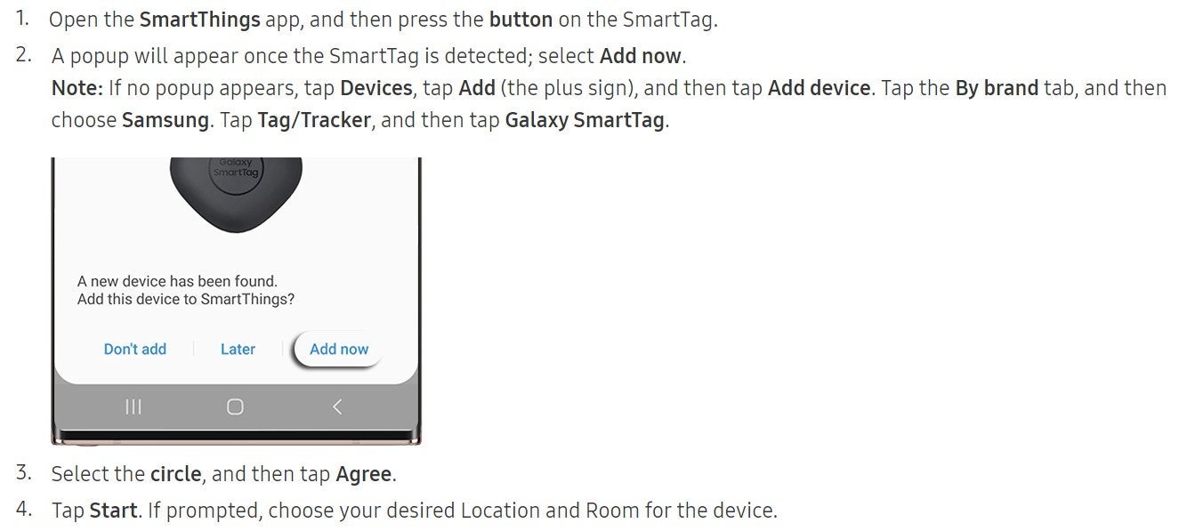 The directions below, and in the following screenshots, come from Samsung's website's how-to advice for the SmartTags.
