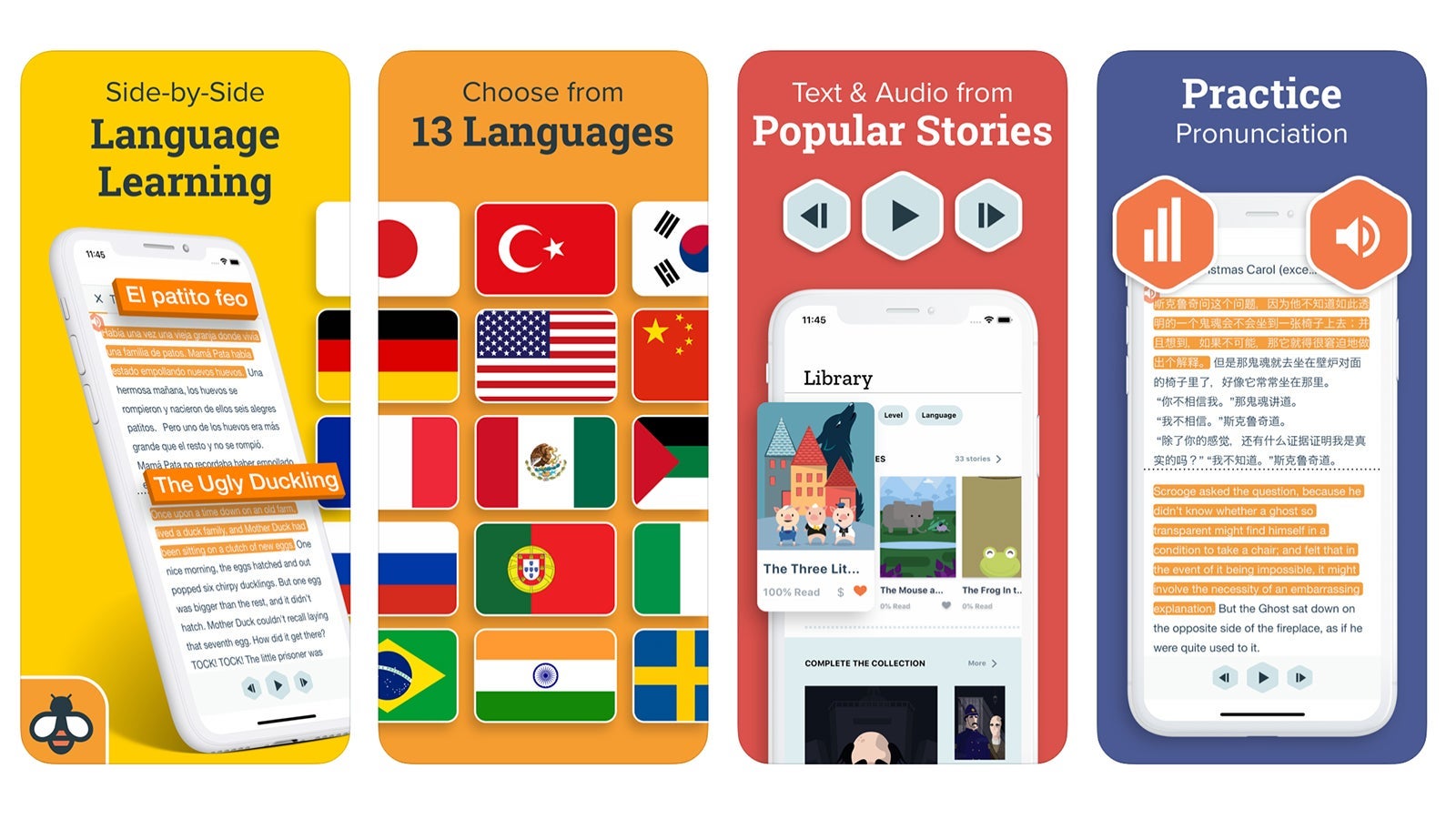 For something a little more fun, enjoy more creative-based learning methods with Beelinguapp, where you can listen to stories and music in 13 different languages. You can read (and say or sing) along in both the language you're learning and your native language.