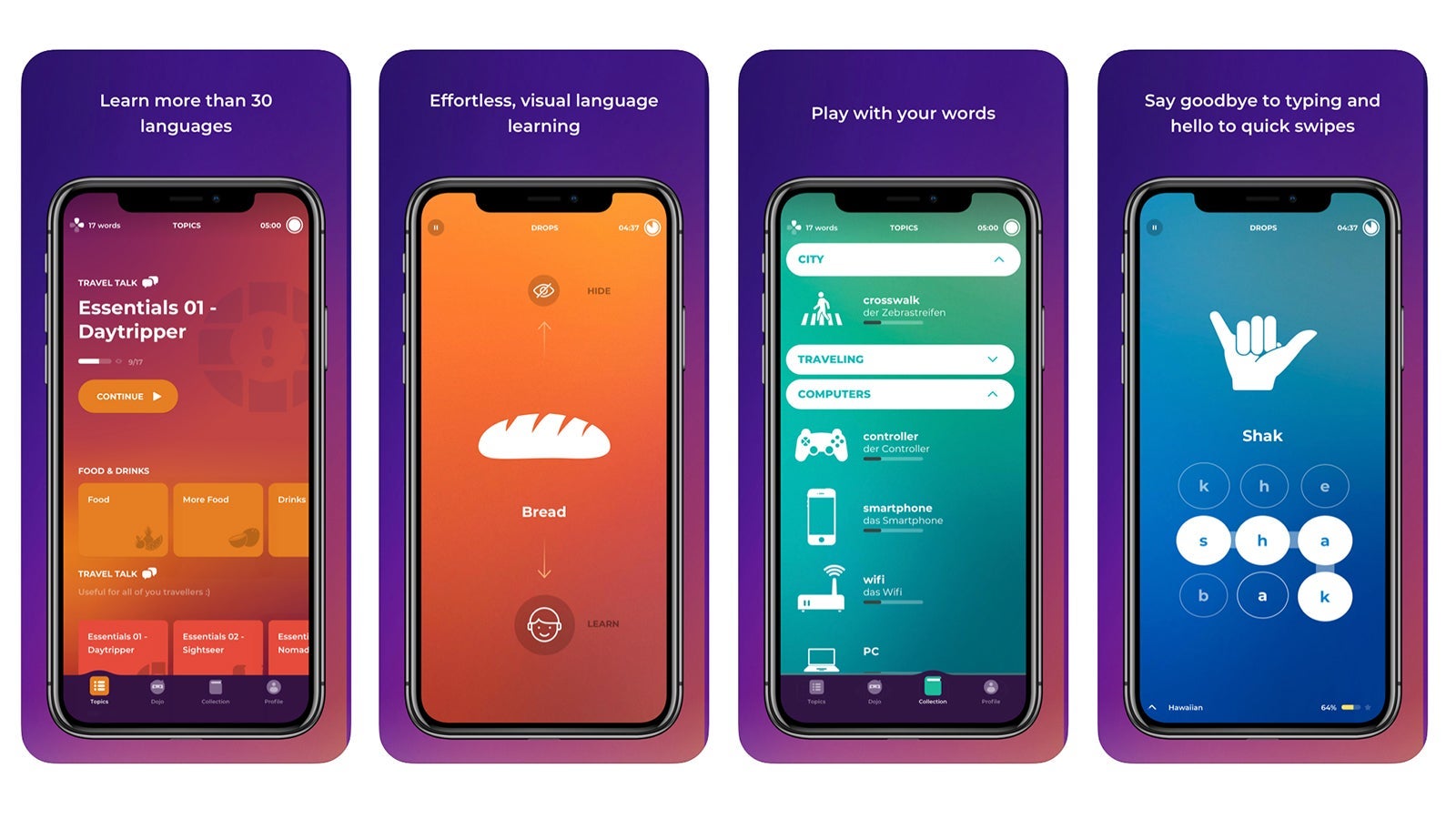 Download Drops for free on App Store or Google Play. Drops Premium includes unlimited sessions and access to all 159 topics in 37 different languages for $69.99 per year (a 7-day free trial is offered).