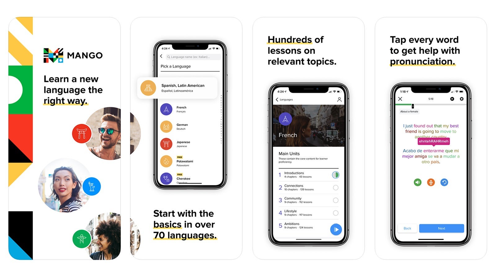 Download Mango for free on the App Store or Google Play and gain access to limited complimentary lessons. Single language subscriptions start at $7.99 per month, and all-language access starts at $17.99 per month, including five family profiles so everyone in your household can learn a new language (a 14-day free trial is offered).