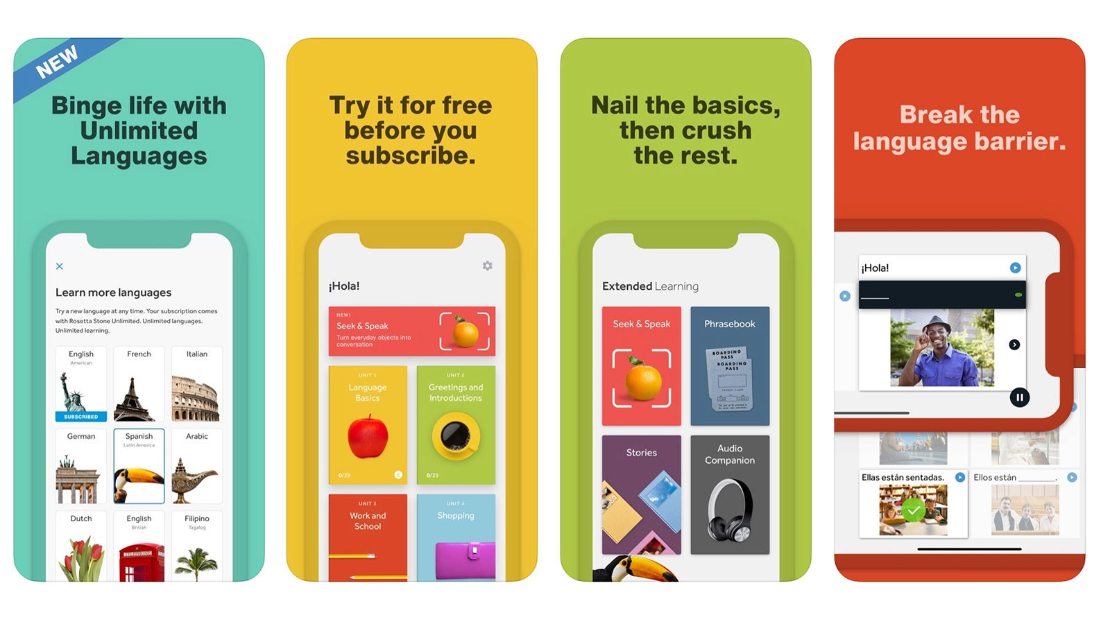 Download Rosetta Stone for free on App Store or Google Play. You'll get 30 minutes of content for free, but full access memberships include 250 hours of content, 20 units of immersive learning and downloadable lessons you can use offline. Full access costs $109.99 (a 7-day trial period is offered).