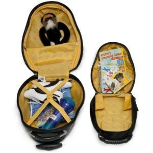 Trunki offers a novelty rectangular suitcase that doubles as a preschooler riding toy. While not commenting on any specific product, Jacobs says that it's important to clarify how you'd safely use a bag that a child can ride on: Would a toddler insist on trying to ride it in crowded or small spaces? If items of this sort might provide an enjoyable play option at a hotel room or grandma's house, consider how you will manage expectations en route.