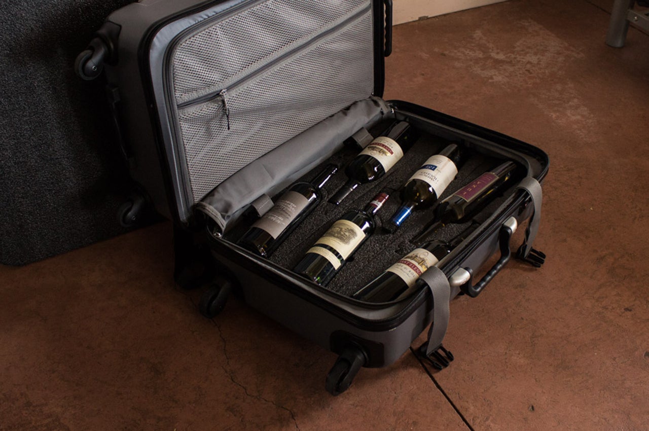 One thing to note: If you're headed to Champagne or anywhere that makes sparkling wine, the case is only intended to hold one fat-bottomed bottle per side (for a total of two). Ignoring this fact, I've squeezed two bottles into one side without issue but haven't made a habit of it.