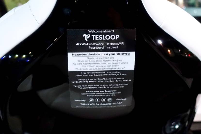 Besides being safe and environmentally friendly, Tesloop aims to provide a comfortable journey by offering an array of complimentary amenities.