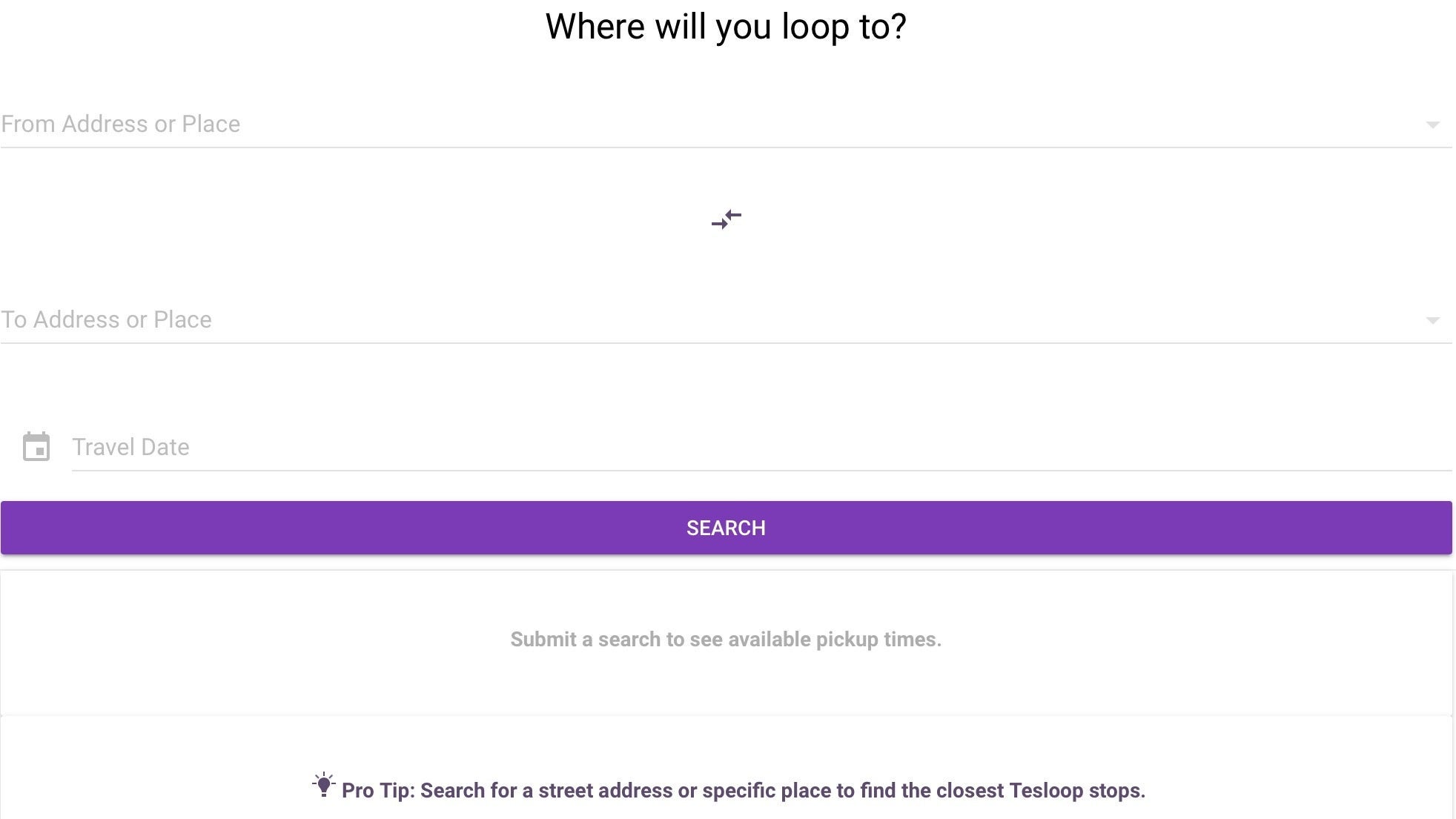 On the first page of the booking process, I was asked to enter my starting and ending addresses along with travel date. Note, Tesloop does not provide door-to-door service, but rather uses the addresses to find the closest designated pick-up and drop-off spots; also, the system only permits one-way bookings so you'll need to make two separate bookings for round-trip travel.