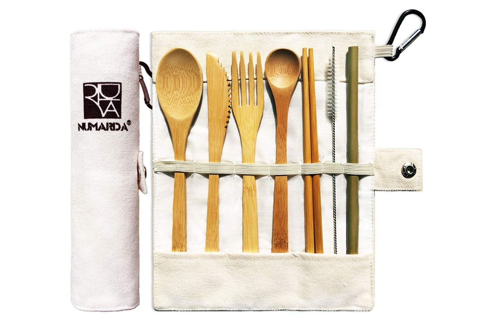 Avoid plastic cutlery at work, at home and when traveling with this nontoxic, chemical-free bamboo cutlery set. Coming with a special travel pouch, the set contains a fork, knife, spoon, straw, cooking spoon and chopsticks, as well as a special cleaning brush.