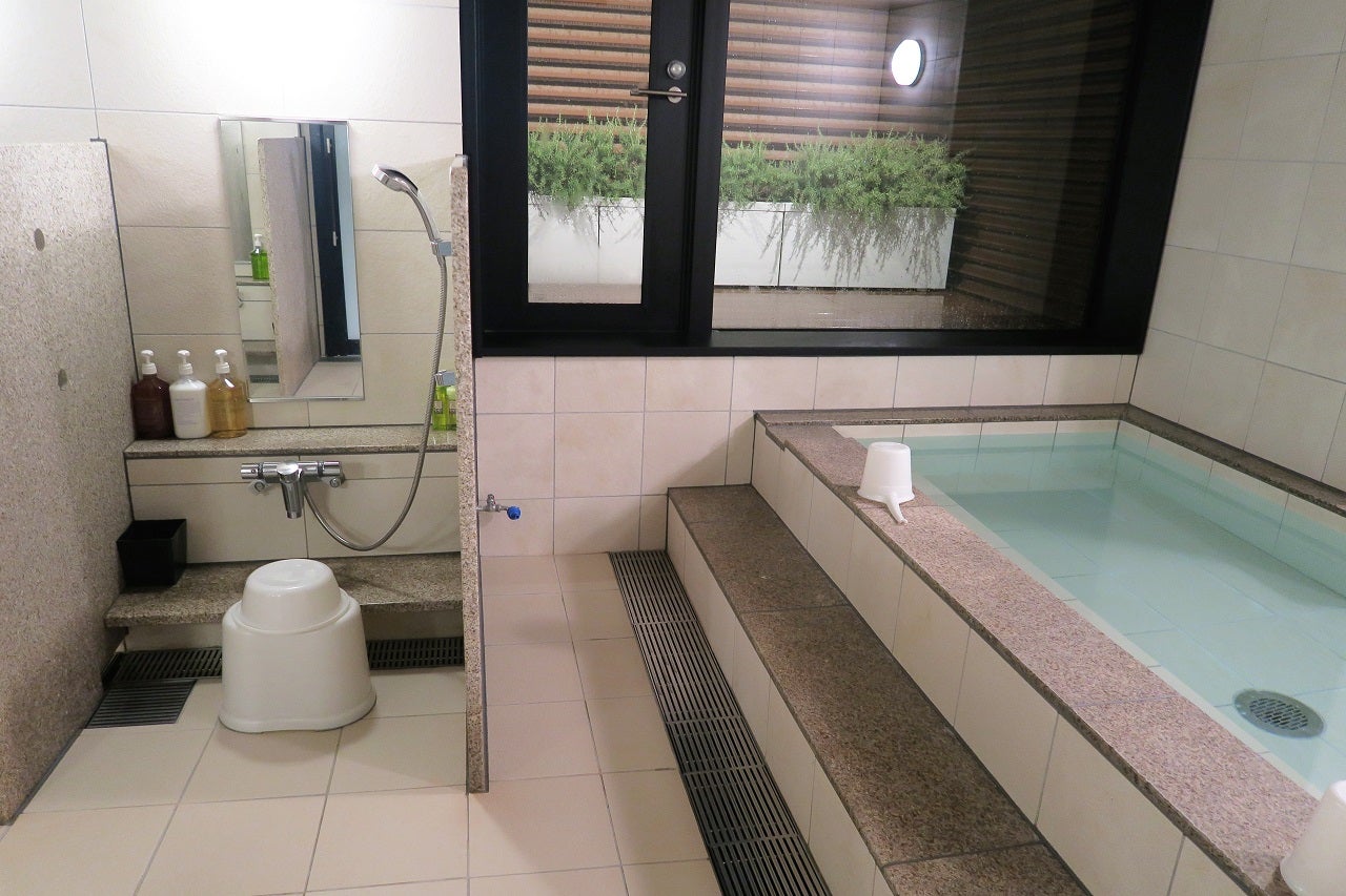 In some locations, the baths are in the same room as the showers. (This was the case at both hotel baths I visited.) At larger locations, the baths may be spread across multiple rooms, or some may be inside while others are outside.