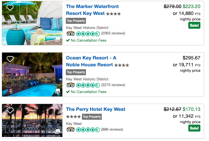 Some points-friendly hotels in Key West include: