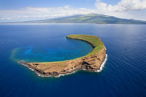 7. Molokini Crater, Hawaii. Located in Alalakeiki Channel just three miles off the coast of Maui in Hawaii, Molokini is a crescent-shaped, half-submerged volcanic crater islet. Its crescent shape protects from big waves and currents, making it ideal for a relaxing snorkel experience. Water visibility is tremendous here, usually between 100-150 feet, but it can get up to 200 feet on a good day. The water stays unpolluted and clear because the crater was named a Marine Life Conservation District in 1977. It's a Hawaii State Seabird Sanctuary, as well, so you can easily spot a wedge-tailed shearwater or a bulwer petrel. Molokini's stunning coral reef is home to over 200 species of fish (surgeon fish, black triggerfish, Moorish idol, moray eels and more), but the big attraction here is the whale shark, which despite its size, isn't a threat to humans--the species is vegetarian. Keep in mind, this is a popular snorkeling spot, so if you're looking to be the only ones on a deserted snorkel adventure, this is probably not your pick.