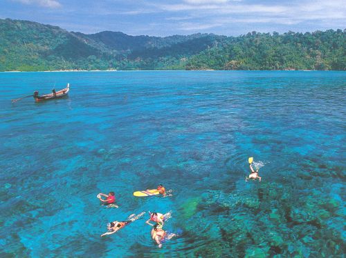 6. Surin Islands, Thailand. An archipelago of five islands in the Andaman Sea, Surin Islands are just over 30 miles from the Thai southern mainland, west of the Suk Samran district. A National Marine Park created in the 1980s, the archipelago is protected from mass tourism and over-fishing, and its pristine conditions allow snorkelers to see whale sharks, manta rays, sea turtles and napoleon wrasses. About 11 miles east of the islands themselves, in the middle of the open sea, Richelieu Rock is considered one of the most famous dive spots in the world. Its clear, shallow water is ideal for both beginner and advanced snorkelers, offering stunning views of several coral reefs. Since the Surin Islands are uninhabited (meaning no resorts, hotels, etc.) your best bet is to stay on the mainland and book a chartered snorkeling tour.