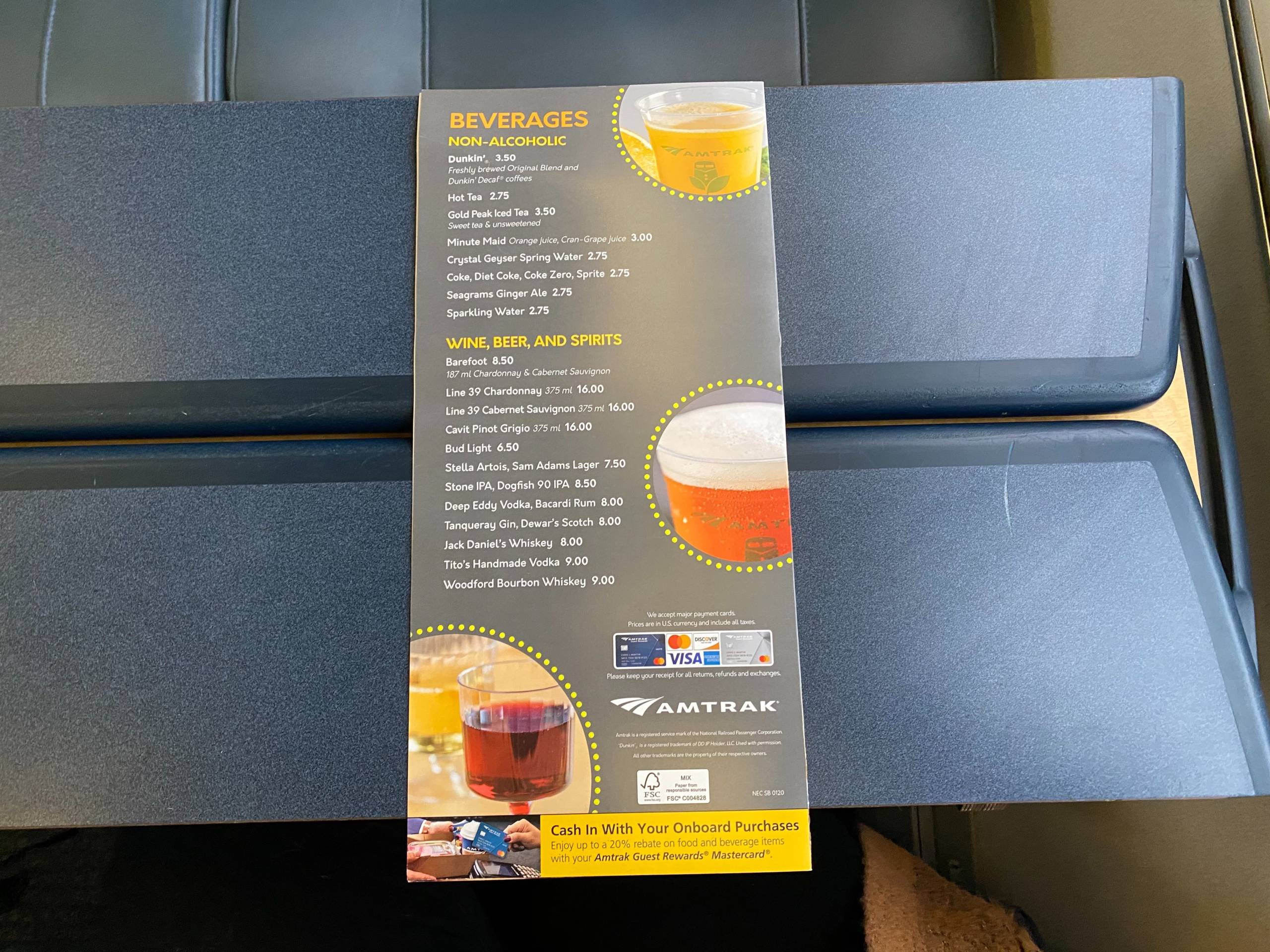 Business-class passengers have the option to purchase food and drinks, though you have to order at the snack bar, located in its own car. The offerings weren't anything special -- think Jimmy Dean breakfast sandwiches -- and I'd already had breakfast, so I wasn't tempted.