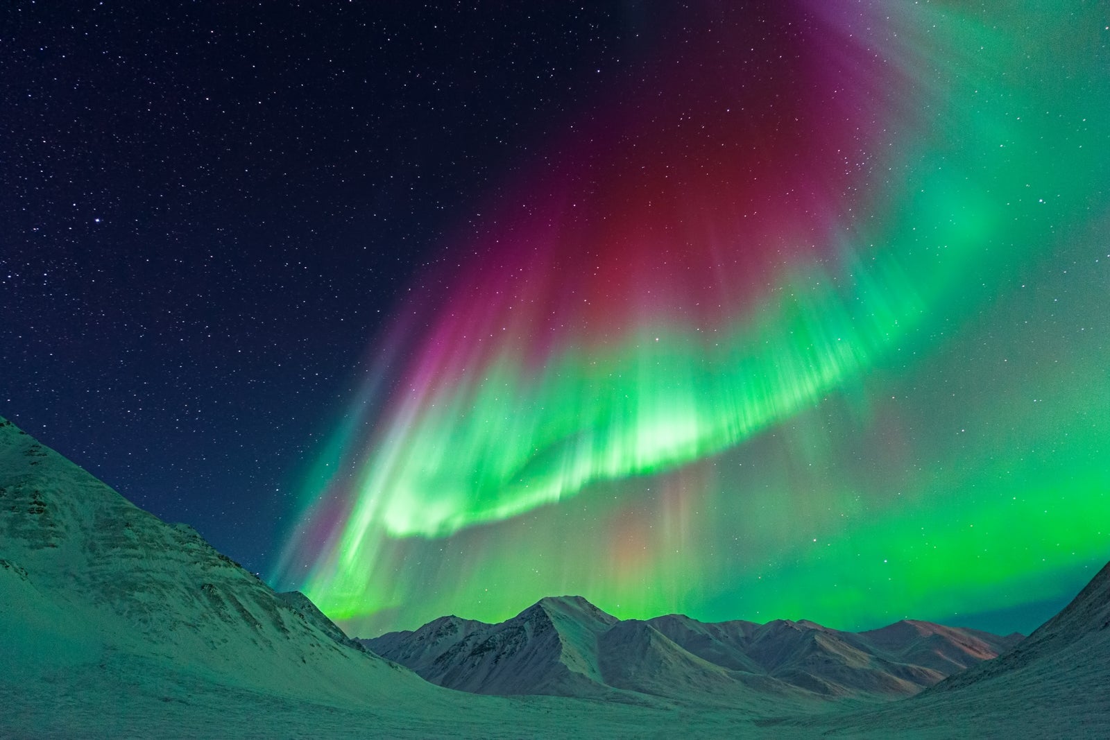 The Northern Lights near Atigun Pass along the Dalton Highway in Alaska. (Photo by Noppawat Tom Charoensinphon/Getty Images)
