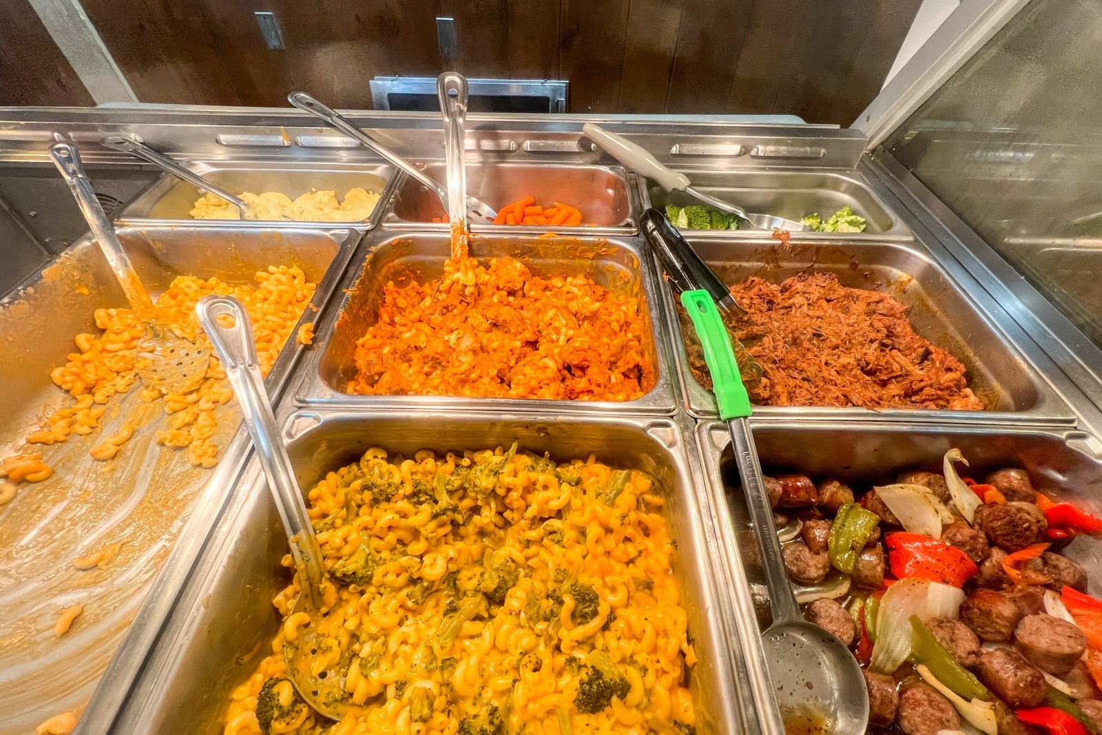 The food certainly won't wow. But all the theme-park staples are here and we managed to find something for everybody.