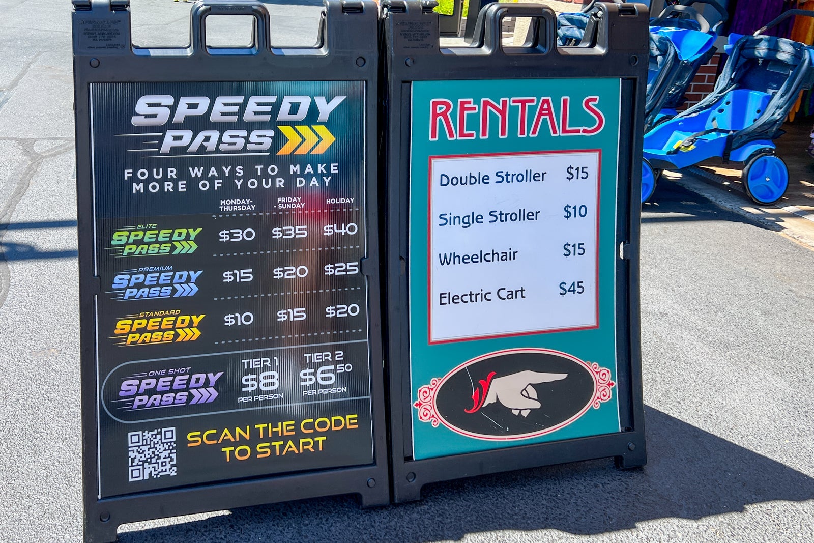 The park is testing out a new line-cutting feature called Speedy Pass. There are three levels, with weekend pricing at $15, $20 or $35 per person. Lake Compounce runs the service a bit differently than other parks. The pass allocates a reservation time for guests. The more you pay, the shorter the wait until your next reservation. However, we skipped the pass since it is currently only good for four rides at the water park.