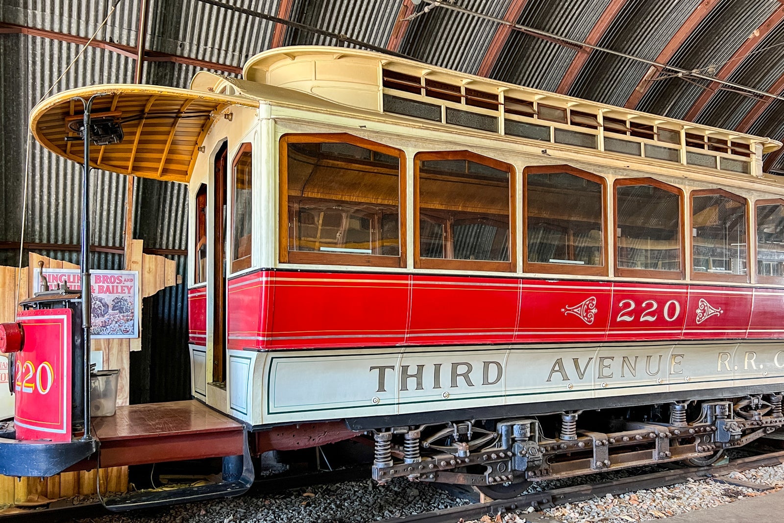 On the return trip, we stopped at the museum's workshop and storage barns. This is where the rest of the collection is stored and another guide gave us the history of trolleys — the development from horse-drawn carriages up to the post-World War II demise, thanks to the car.