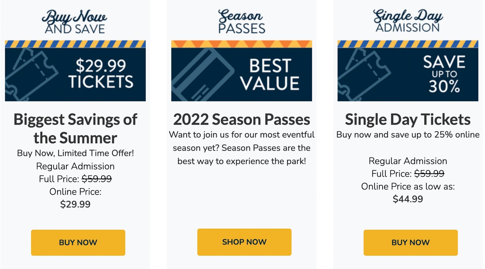 Recently, online advance weekend purchases cost $49.99 and weekdays were $34.99. We snagged tickets the day before our Saturday, July 9 visit for just $29.99.
