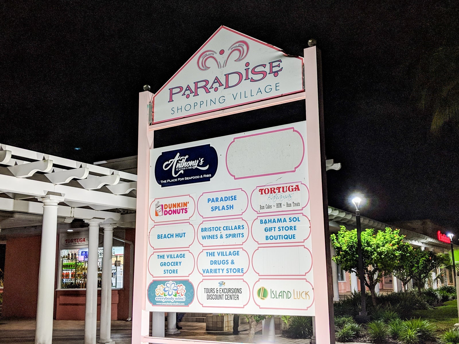 We saw a few large cases of beer being stored in the luggage storage room when we departed and noticed multiple groups of people walking around the resort with red Solo cups. You can bring alcohol from home or purchase some in the Bahamas; there's a rum shop and an island grocery store in a shopping center near the harbor village.
