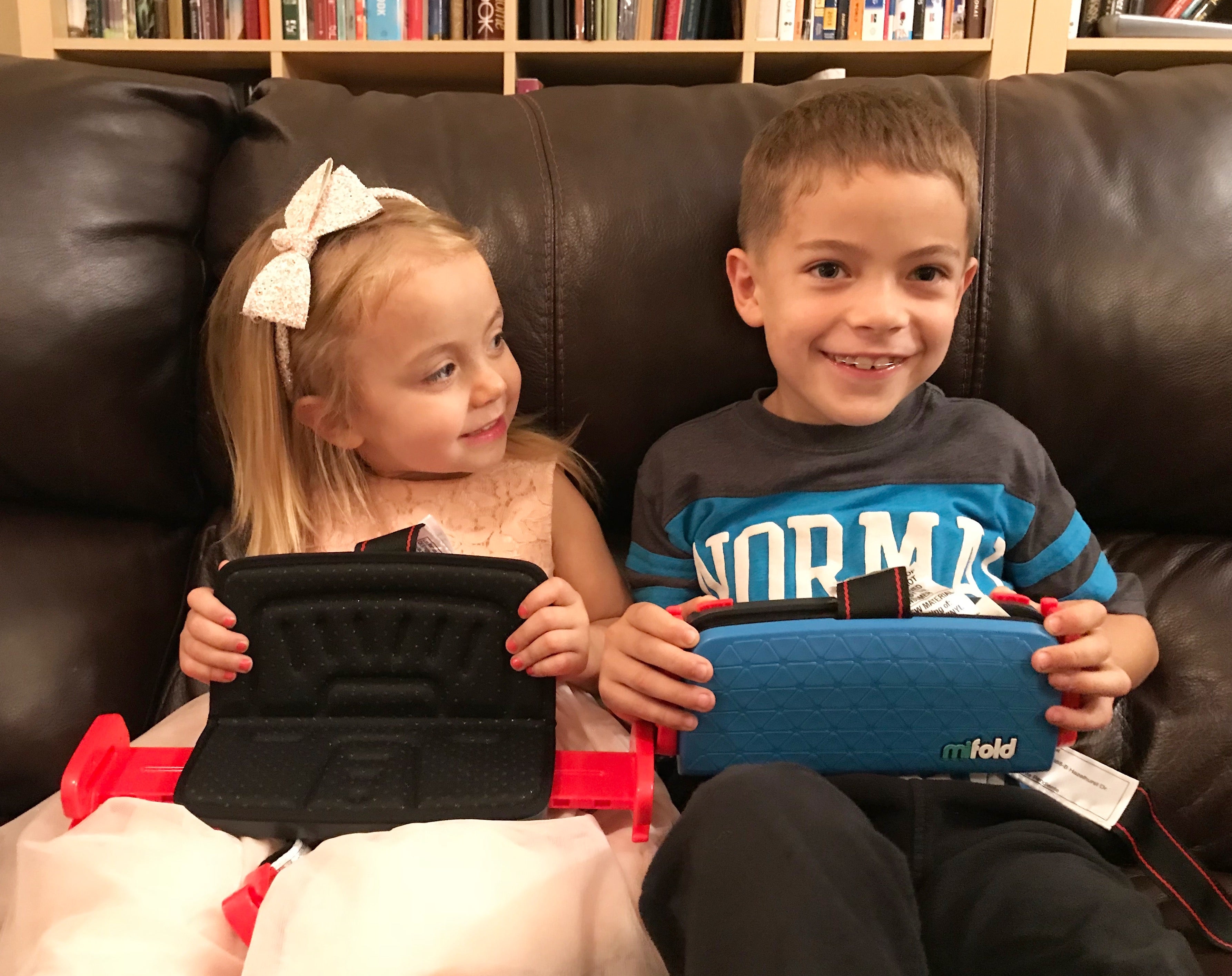 Life became easier when we discovered the miFold compact car seat. These devices are NHTSA approved yet fold down to the size of a thick paperback when not in use. The compact design easily fits in a suitcase, carry-on or backpack. At a price of about $33 on Amazon, the investment will quickly pay for itself. An added plus is that we let Grandma use the miFold car seats when she visits so that our kids stay safe in her back seat. Here are some additional top travel gear for kids.
