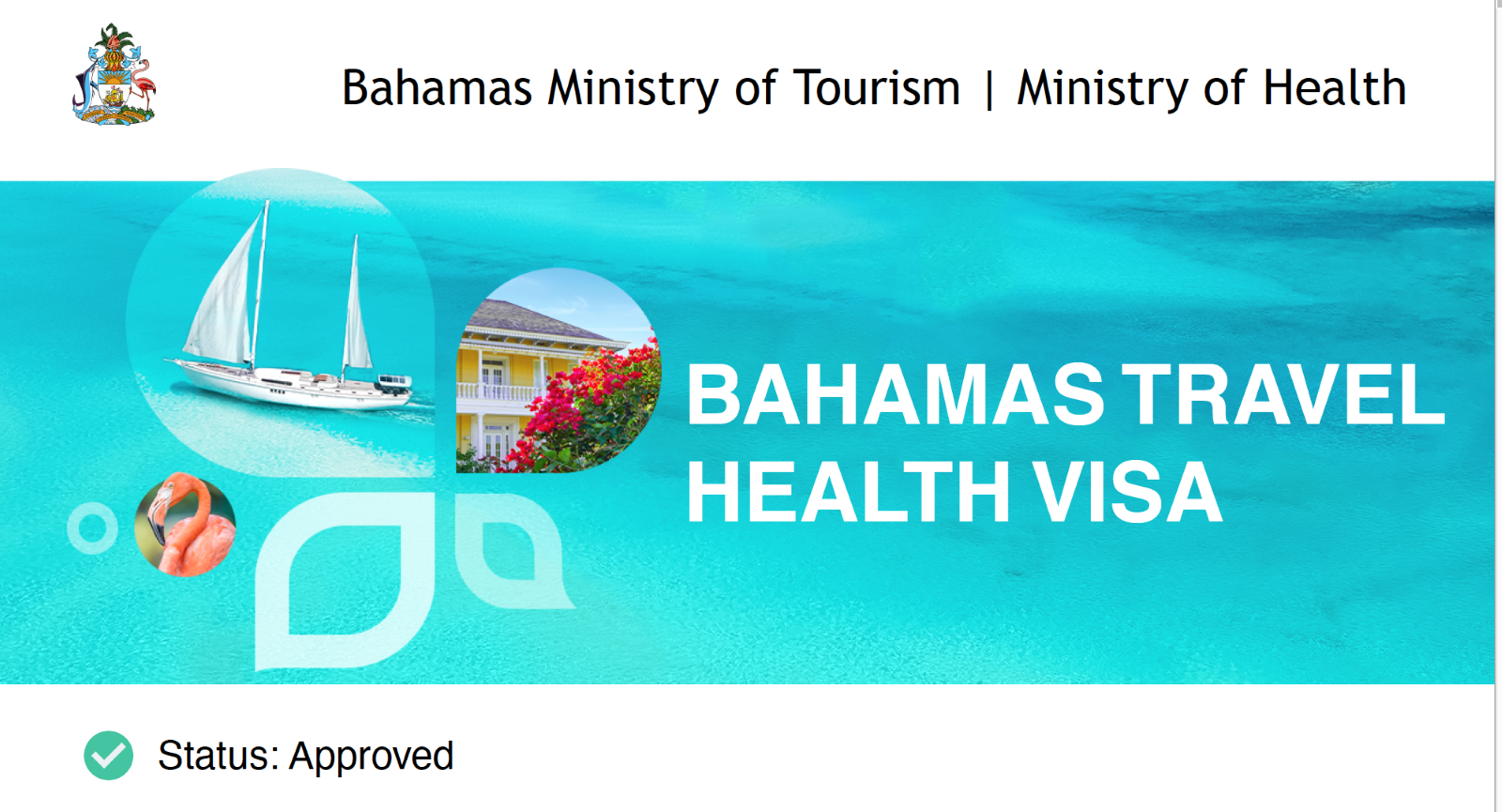 - All travelers will have to bring their approved Travel Health visa with QR code to enter The Bahamas along with a government-issued form of identification (passport, driver's license, etc.) to the approved testing sites.