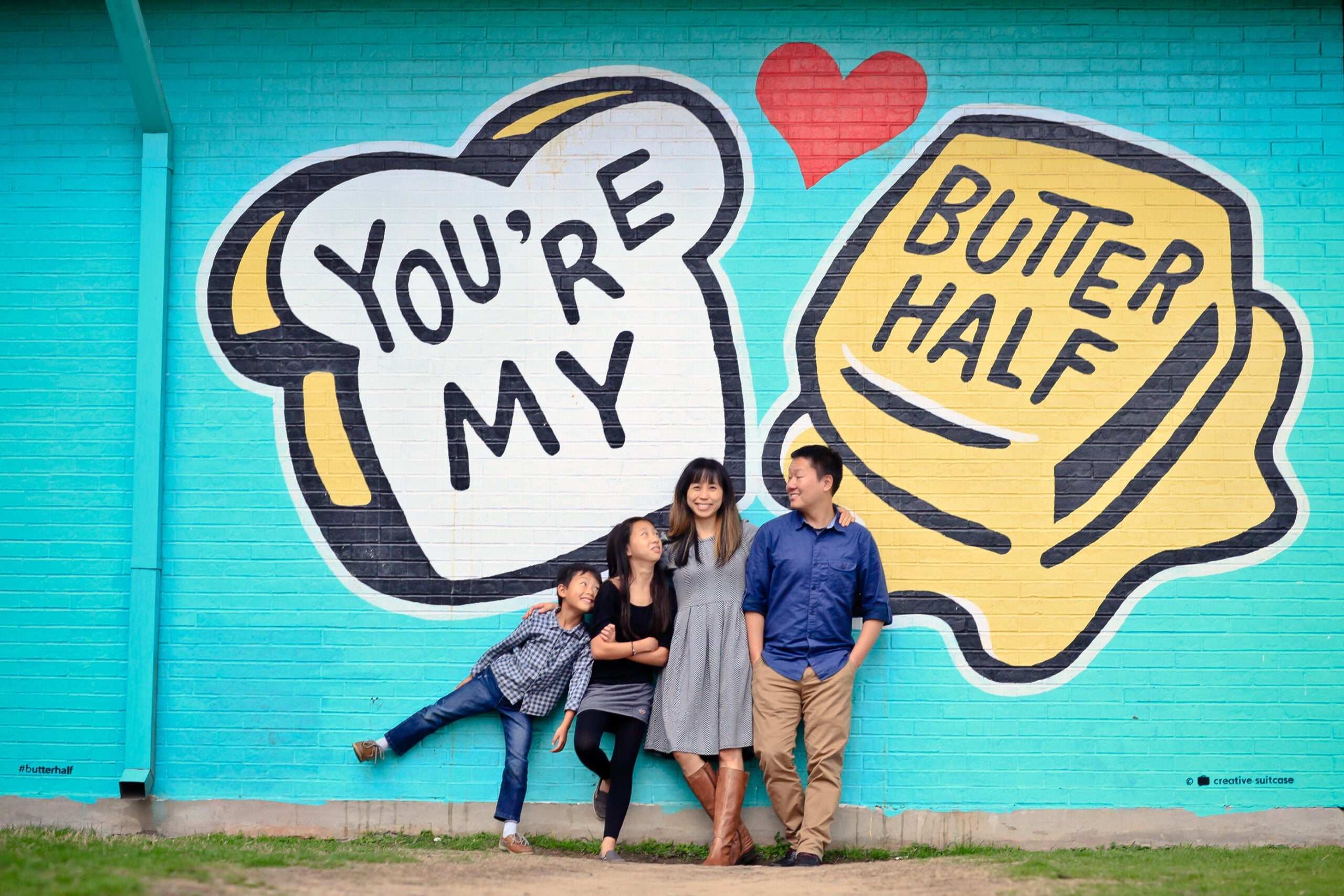 Two other popular photo ops can be found at the "I love you so much" mural on South Congress on the southwest side of Jo's Coffee Shop at W. James Street, and the "You're my butter half" mural at Bennu Coffee in East Austin at Martin Luther King Blvd. and Alamo St.