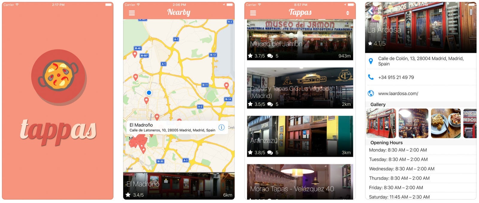 Madrid is famous for its small plates of delicious food, called tapas, and tapeando (hopping from bar to bar sampling tapas) is one of the best ways to dig into Spanish culture and cuisine. But it can be complicated to decide where to go, especially if you want to visit a number of different spots. Create your route using the Tappas app, which shows you the best spots to indulge in these small plates of delicious food. Each restaurant or bar featured has relevant information (address, website and opening hours), reviews and photos. Download for free for iPhone.
