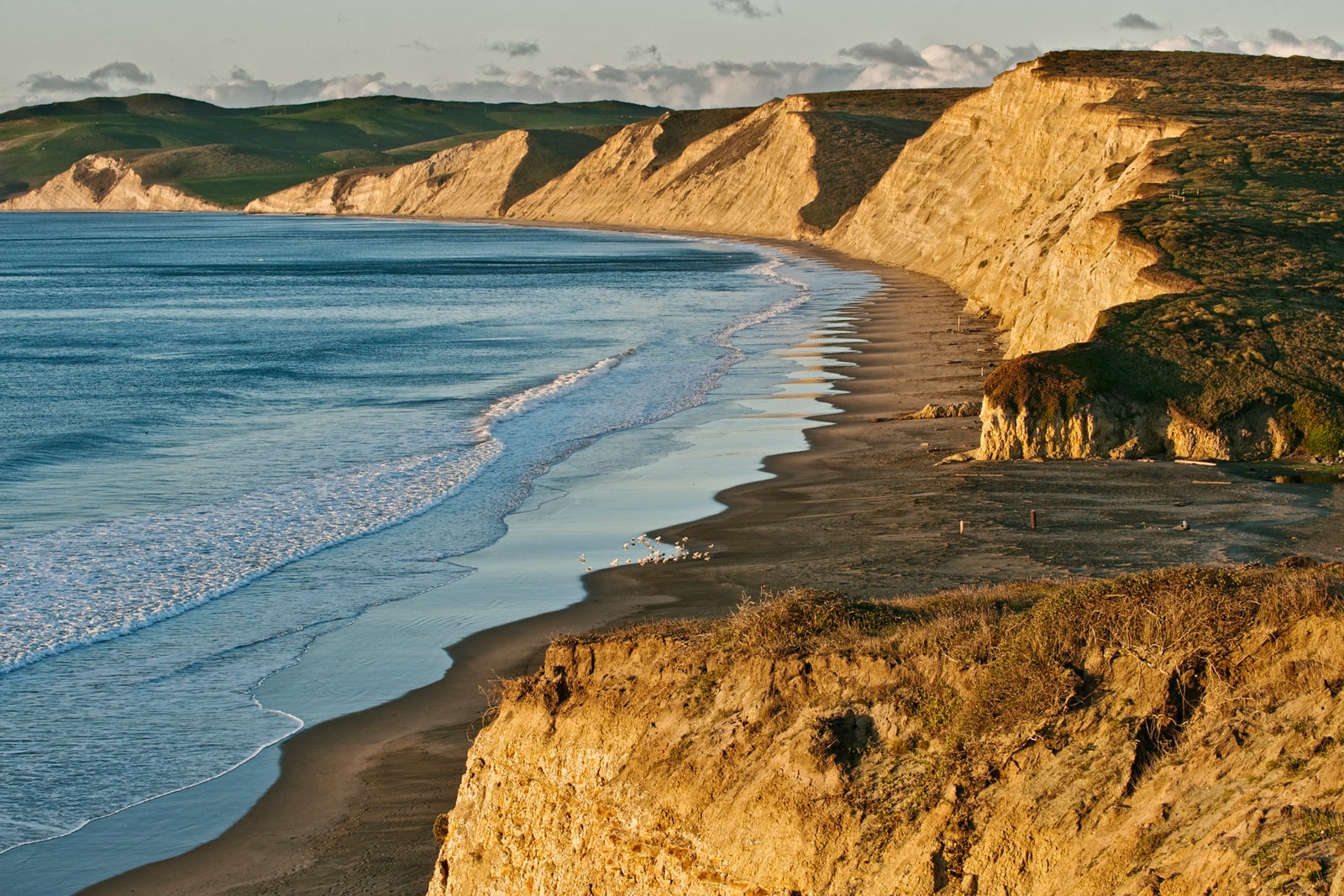 The most sheltered beach in Point Reyes National Seashore, Drake's Beach is tucked within the cove south of the Point Reyes Lighthouse and backed by dramatic white cliffs. With a Visitor's Center and adjacent parking lot, it's the national seashore's most accessible beach and the only one with surf safe enough to splash around in.