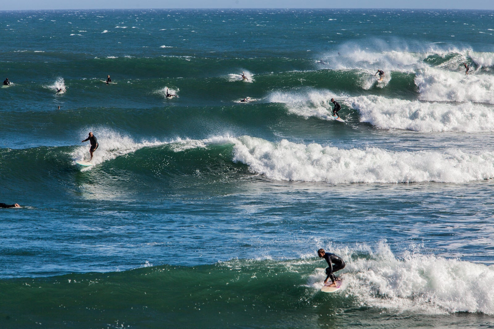 A classic longboard beach with long, rolling waves, this beach — which locals refer to as Cowell's — is where most Santa Cruz surfers build their skills. This is where Santa Cruz's numerous surf schools take their students and you'll see them lining up in groups in the mornings. Those with serious prowess head north, to the famous Steamer Lane off West Cliff, accessible only by paddling around the point and considered among the most exciting (and most dangerous) waves on the west coast. The nearby Santa Cruz Surfing Museum enhances the status, with exhibits including a tribute to Jack O'Neill, credited with developing the modern wetsuit.