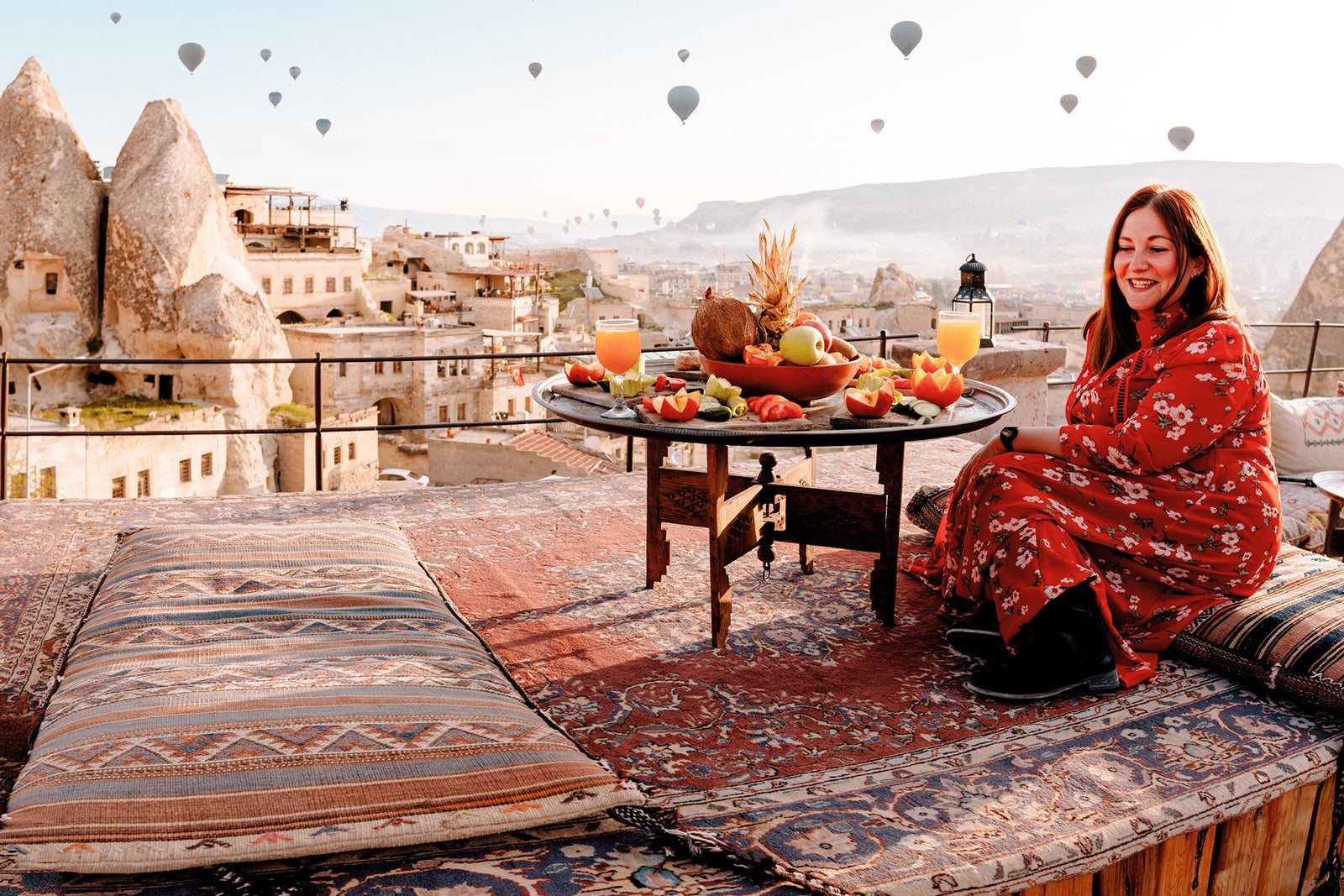 Floating in a hot air balloon at sunrise is Cappadocia's most coveted experience. Take it to the next level by exchanging vows in a hot air balloon basket as you drift over the magical landscape below. Several companies, including Turkey Weddings, curate hot-air balloon ceremonies and corresponding receptions. If hot air balloons aren't your jam, they can plan myriad one-of-a-kind weddings that still showcase the otherworldly scenery.