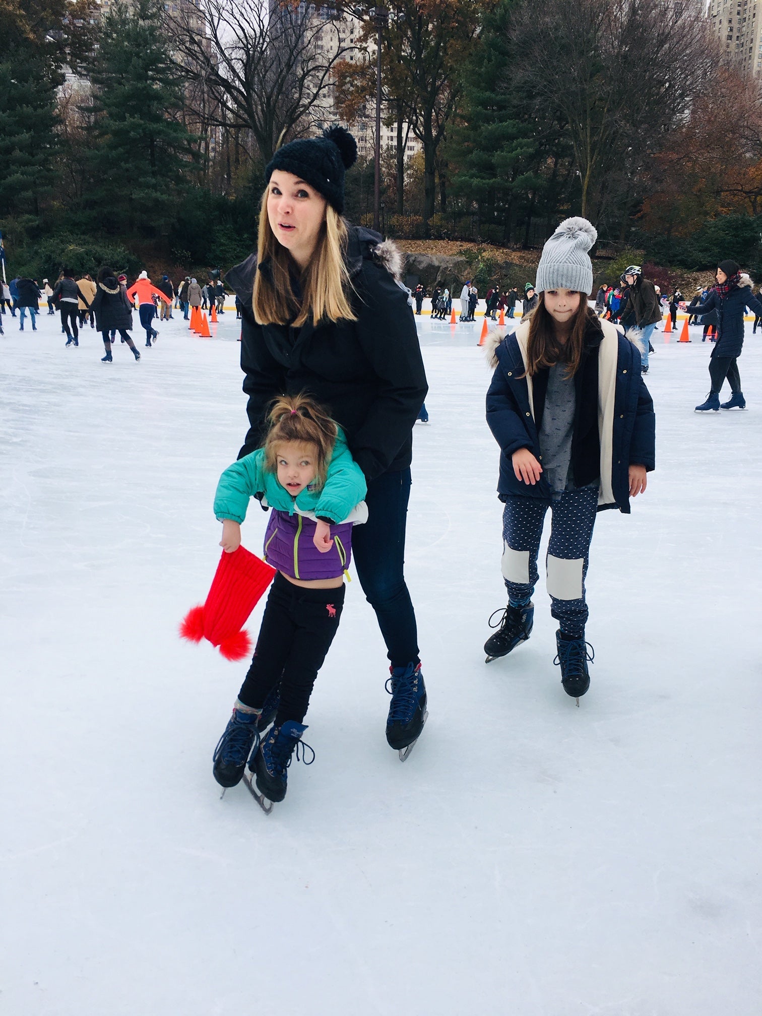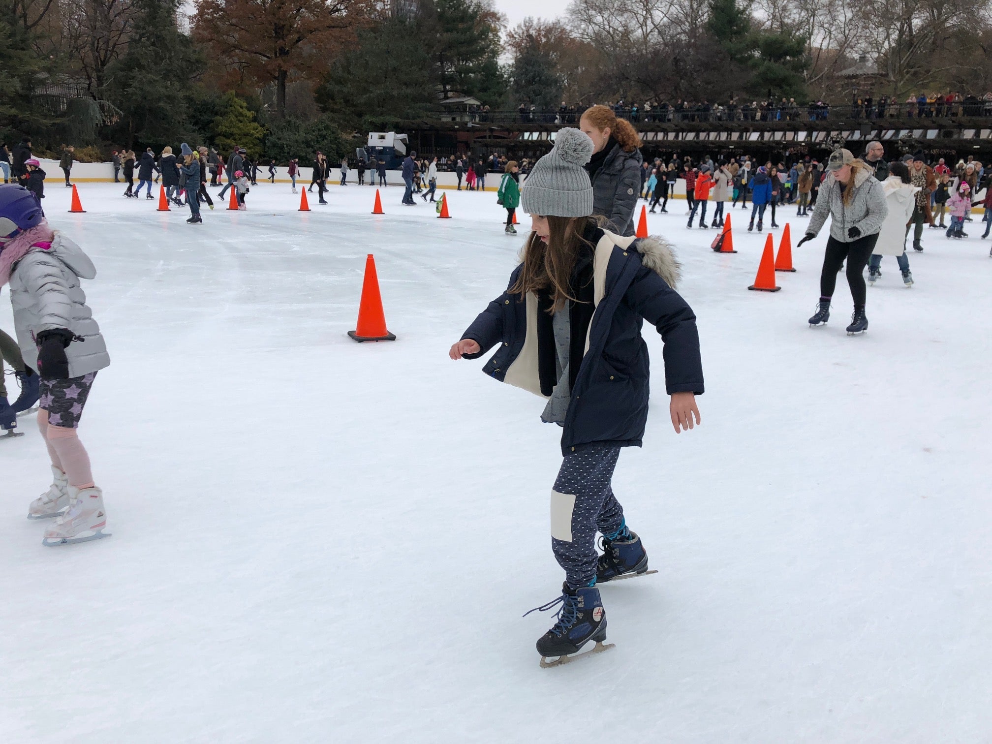 The other caveat to ice skating in Central Park is that they did not have the skate training devices that the younger kids can rent and hold on to. Instead, your only choice is to help your kids learn the old-fashioned way and pick up a bit of a sore back in the process.