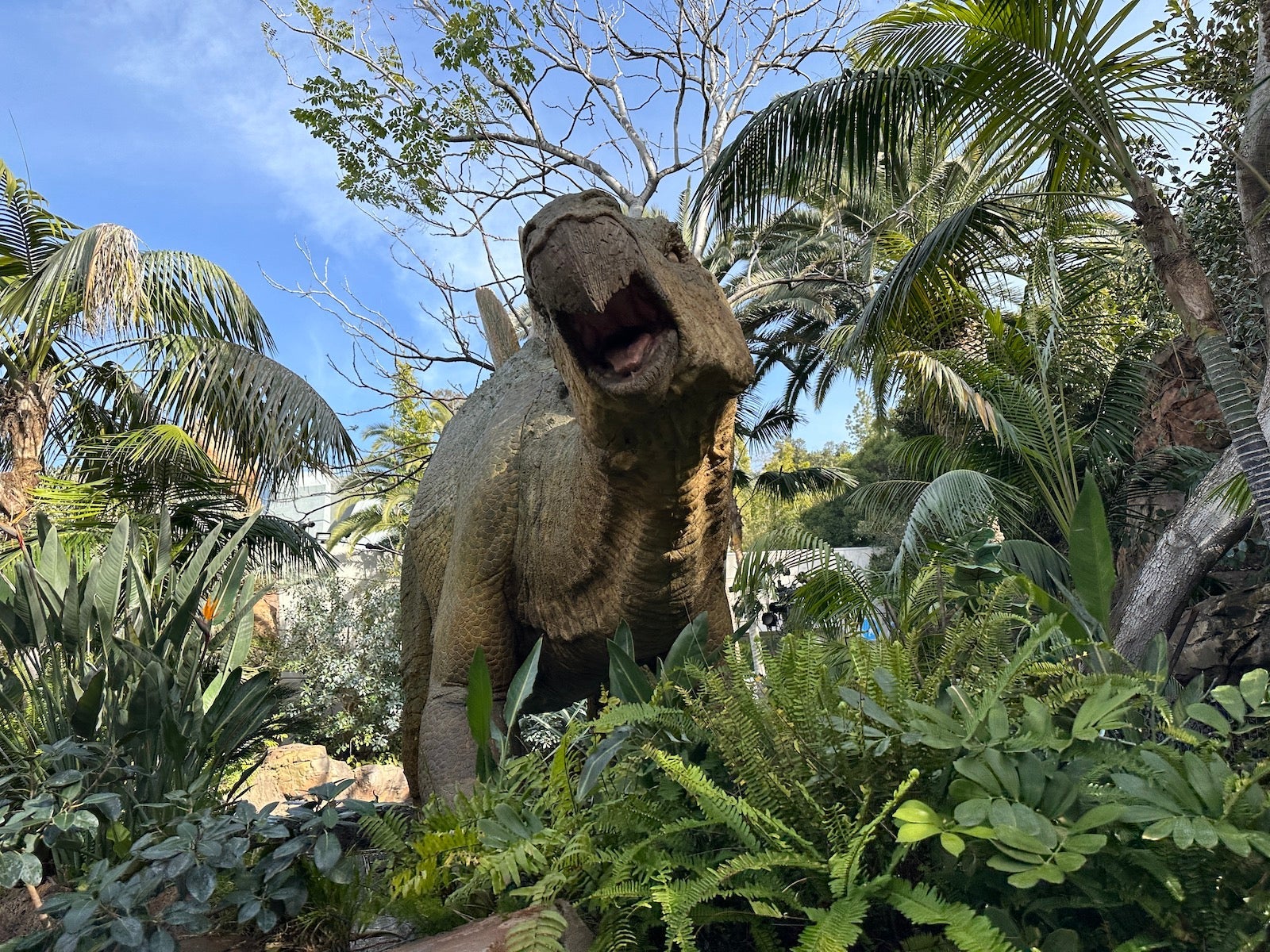 Before you climb to the tippy-top of that 84-foot-tall drop down to the biggest splash of your life, your ride starts as a slow-moving journey past a swimming (if somewhat agitated) Mosasaurus, a baby Stegosaurus and a Parasaurolophus.