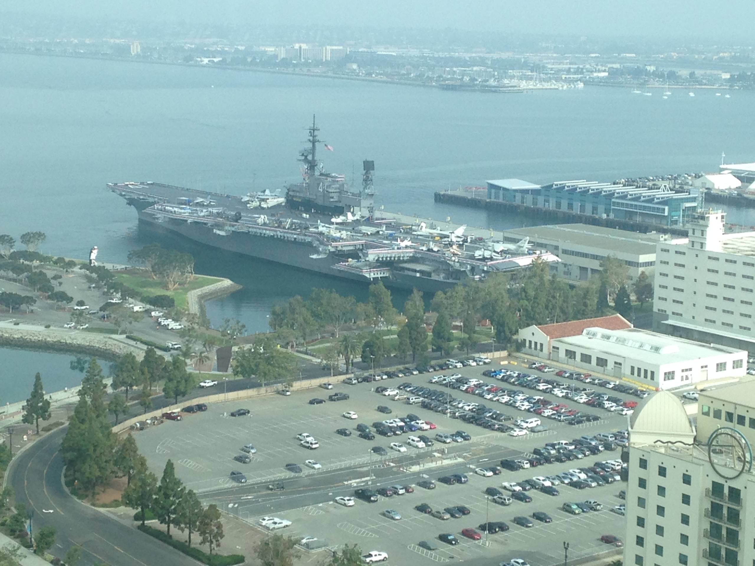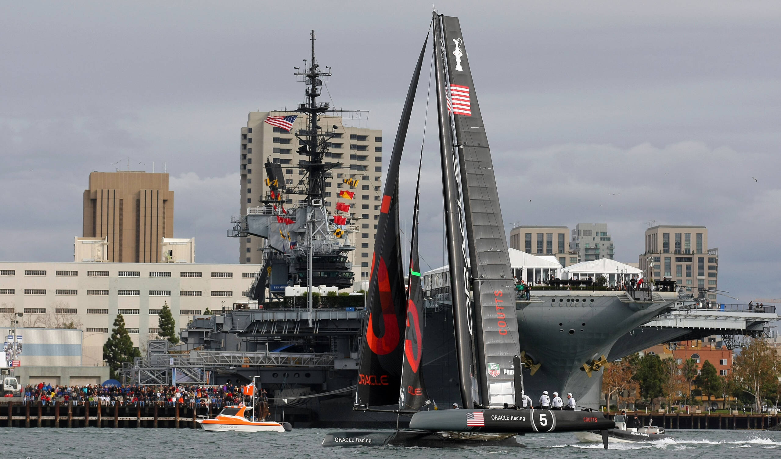 San Diego skyline and the U.S.S. Midway during the America's Cup World Series November 20, 2011 at San Diego Bay. (Photo by Donald Miralle/Getty Images)