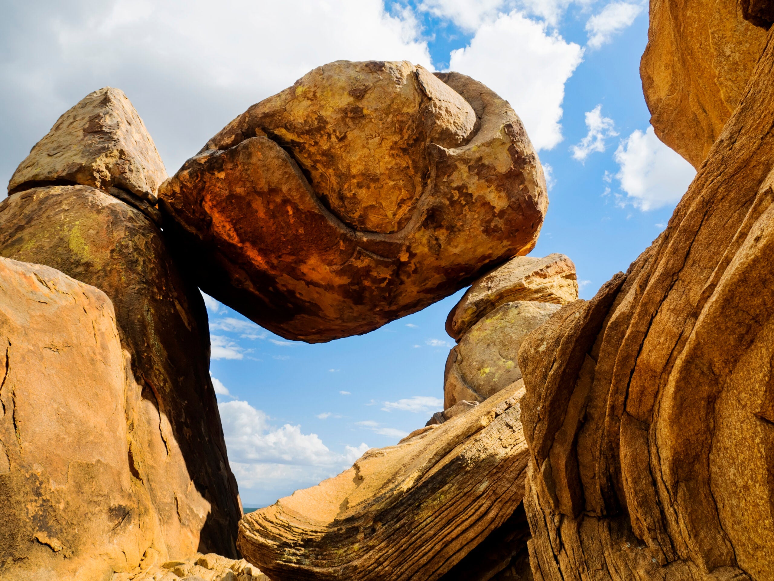Desert: The Chimneys Trail is a 4.8-mile round trip moderate hike that's known for, well, its "chimneys." The prominent volcanic rock formations are a signature landmark, with Indian rock art marking the base of these high pinnacles. Another option is the Grapevine Hills Trail, a shorter, 2.2-mile hike that leads through scrub and cactus to a group of perfectly balanced rocks.