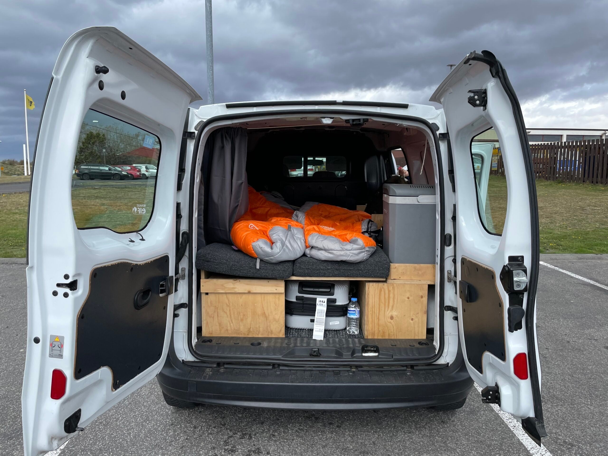 With such limited space in the campervan, the entire backside of the car housed our suitcases, cookware and our beds.