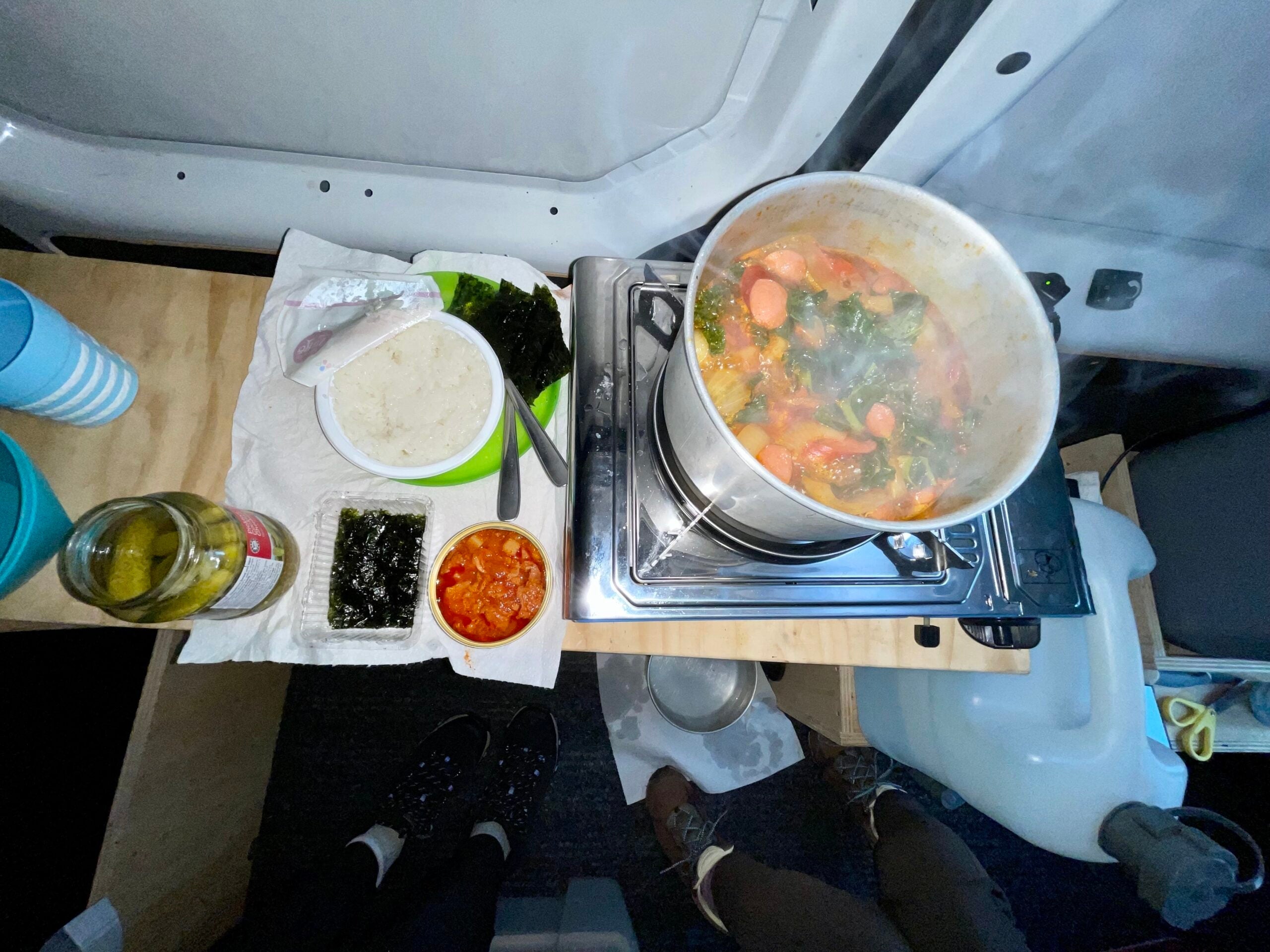 Best of all, all the kitchen utensils and cookware we needed came with our campervan. Not to mention, it was a bonding experience whipping up our meals after a long hike — and I swear the food tastes better in the fresh air.
